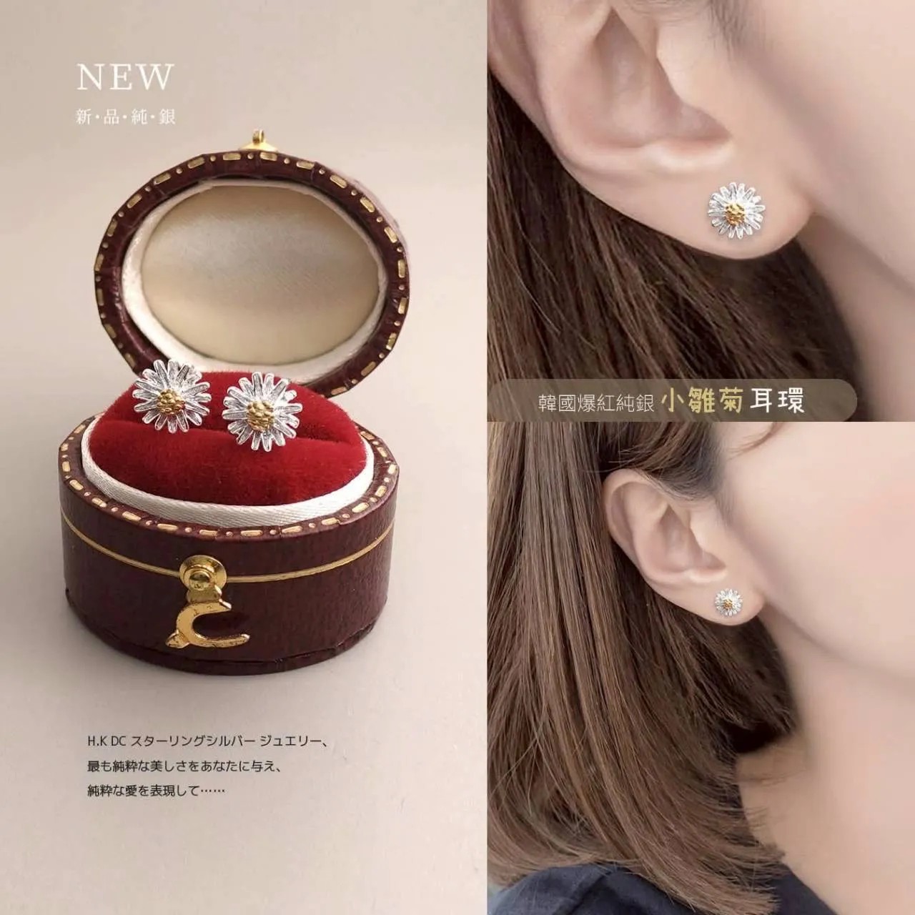 H.K DC925純銀-韓妞必buy-爆紅小雛菊耳環