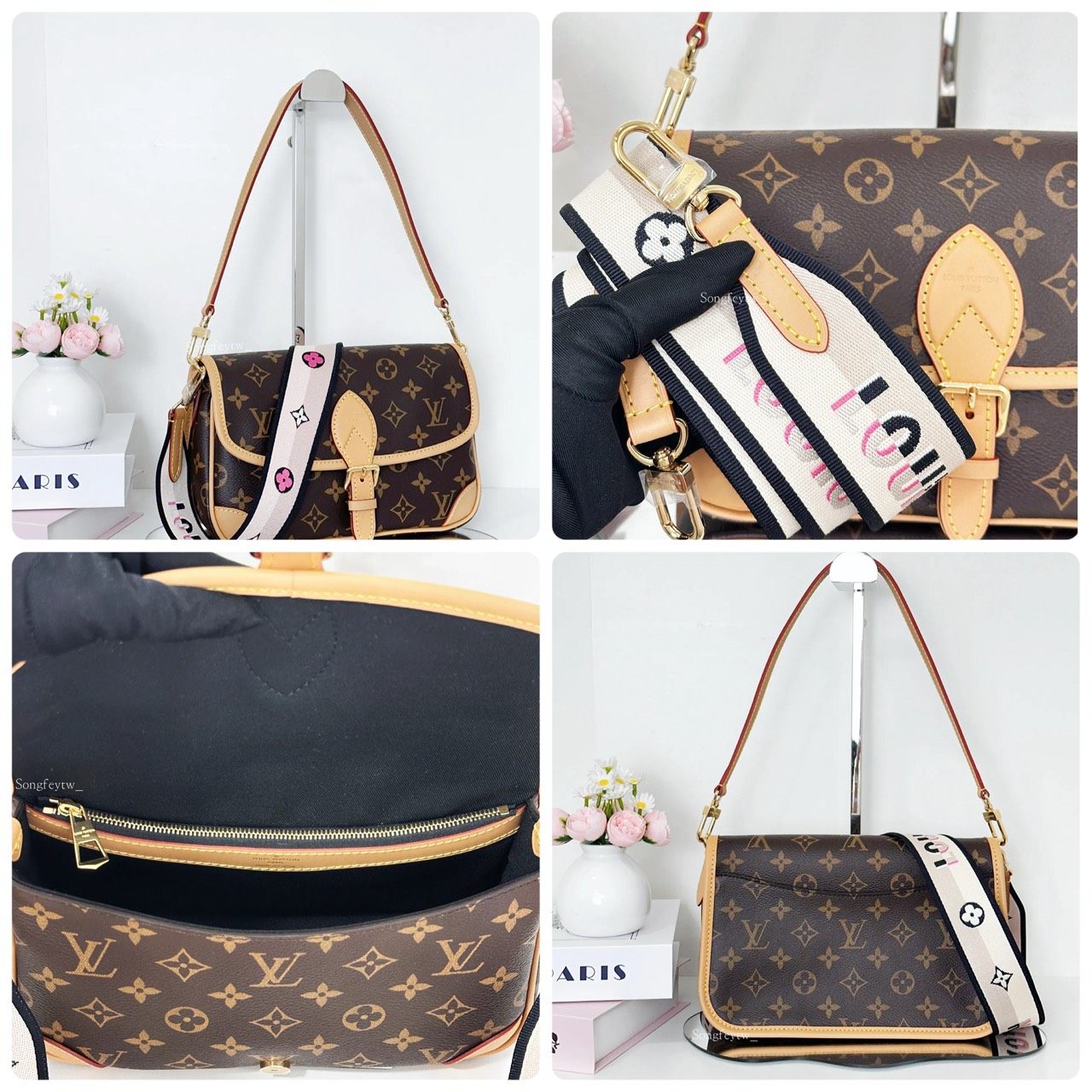 材質:Monogram塗層帆布/仿舊天然牛皮飾邊/紡織襯裡(黑色)/金色金屬件/翻蓋配有磁石搭扣/內置拉鍊口袋