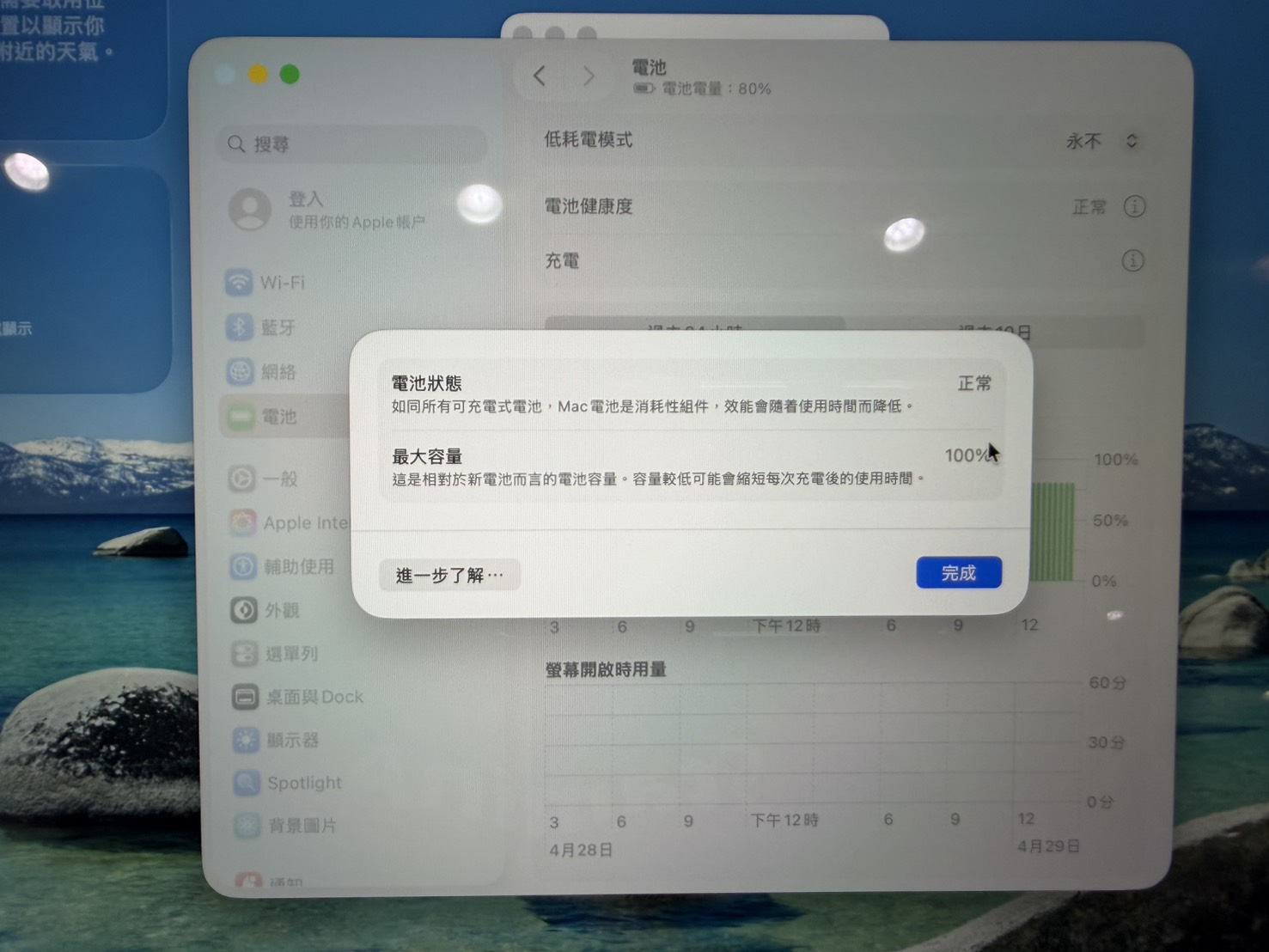 Apple M4 晶片 10 核心 CPU 配備 4 個效能核心與 6 個節能核心 8 核心 GPU、10 核心 GPU 硬體加速光線追蹤 16 核心神經網路引擎 120GB/s 記憶體頻寬