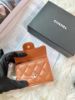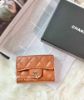 Chanel 焦糖色 金扣 荔枝皮mini三折短夾/錢包