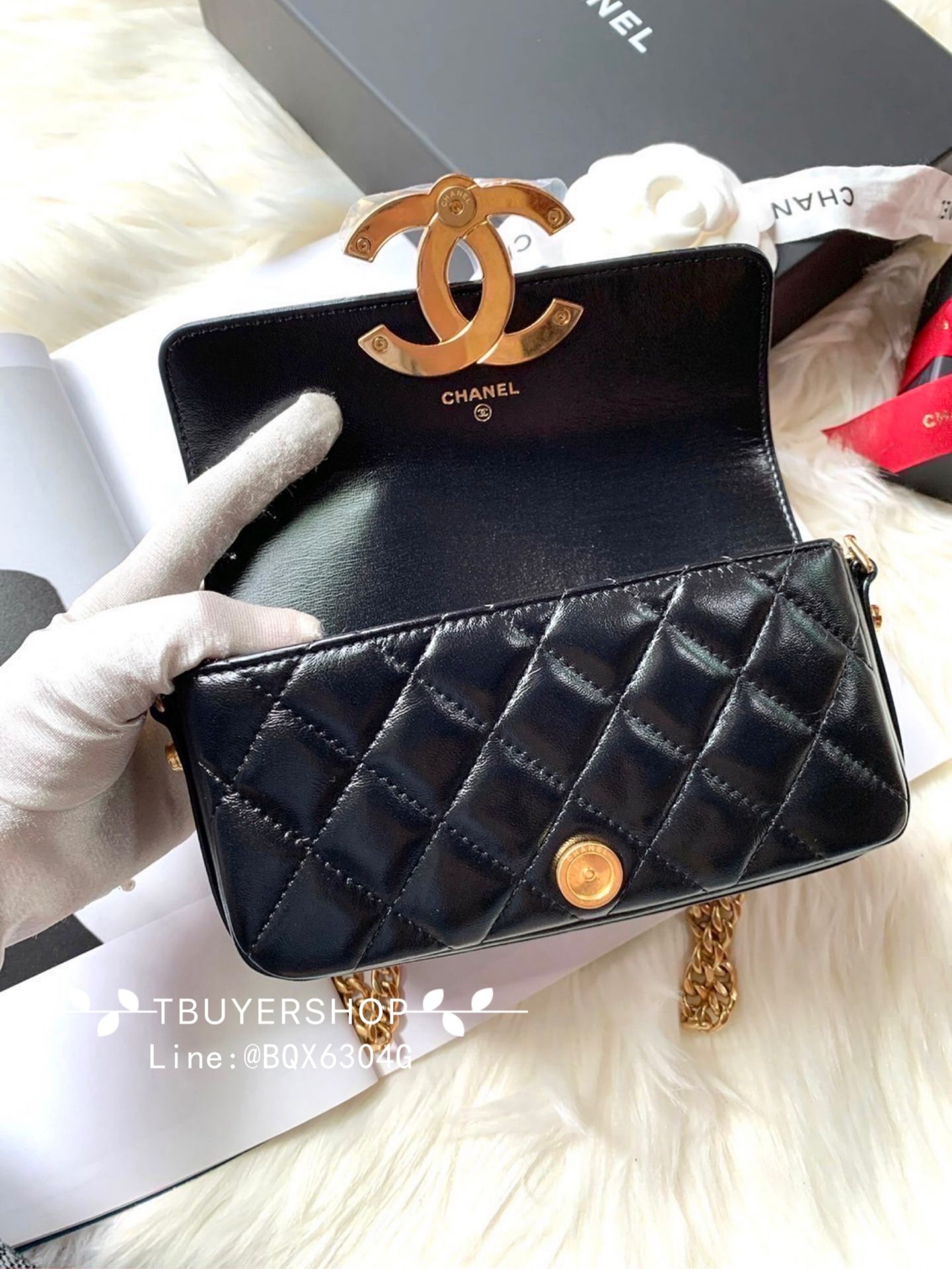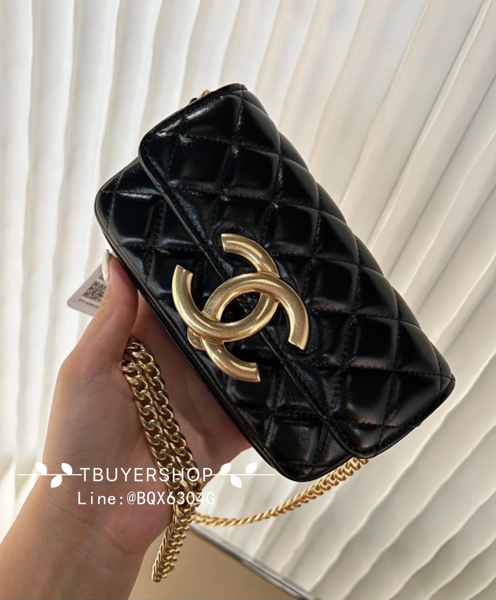 Chanel 爆款💥黑金 復古大雙c 油蠟皮 法棍手機包 裝手機都沒問題