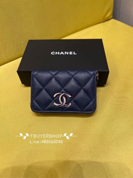 Chanel 琺瑯拼鑽 藏藍色 荔枝皮 拉鍊錢包/卡包 新款內裡多了分層拉鍊更實用