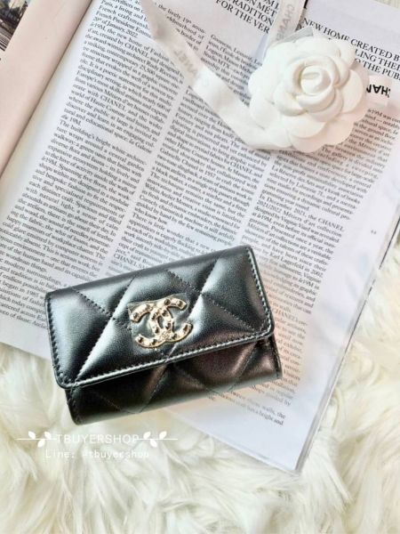 Chanel 黑灰 珍珠大雙c 翻蓋單層卡包/錢包