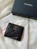 Chanel 黑金 淡金 荔枝皮 鏤空大雙c 對開短夾