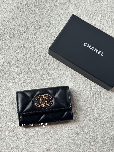 Chanel 19 黑金 羊皮 單層翻蓋卡包/錢包