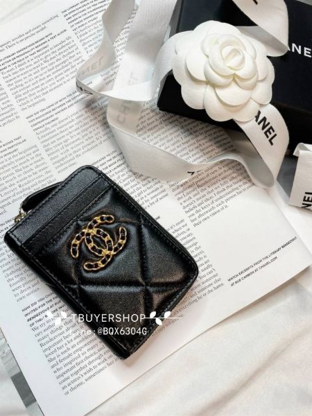 Chanel 19 黑金 羊皮 多層拉鍊卡包/錢包