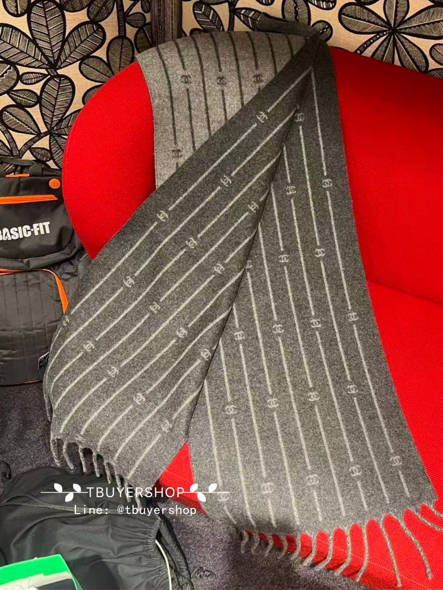 Chanel 25b 滿版logo 灰色 雙面羊絨圍巾🧣