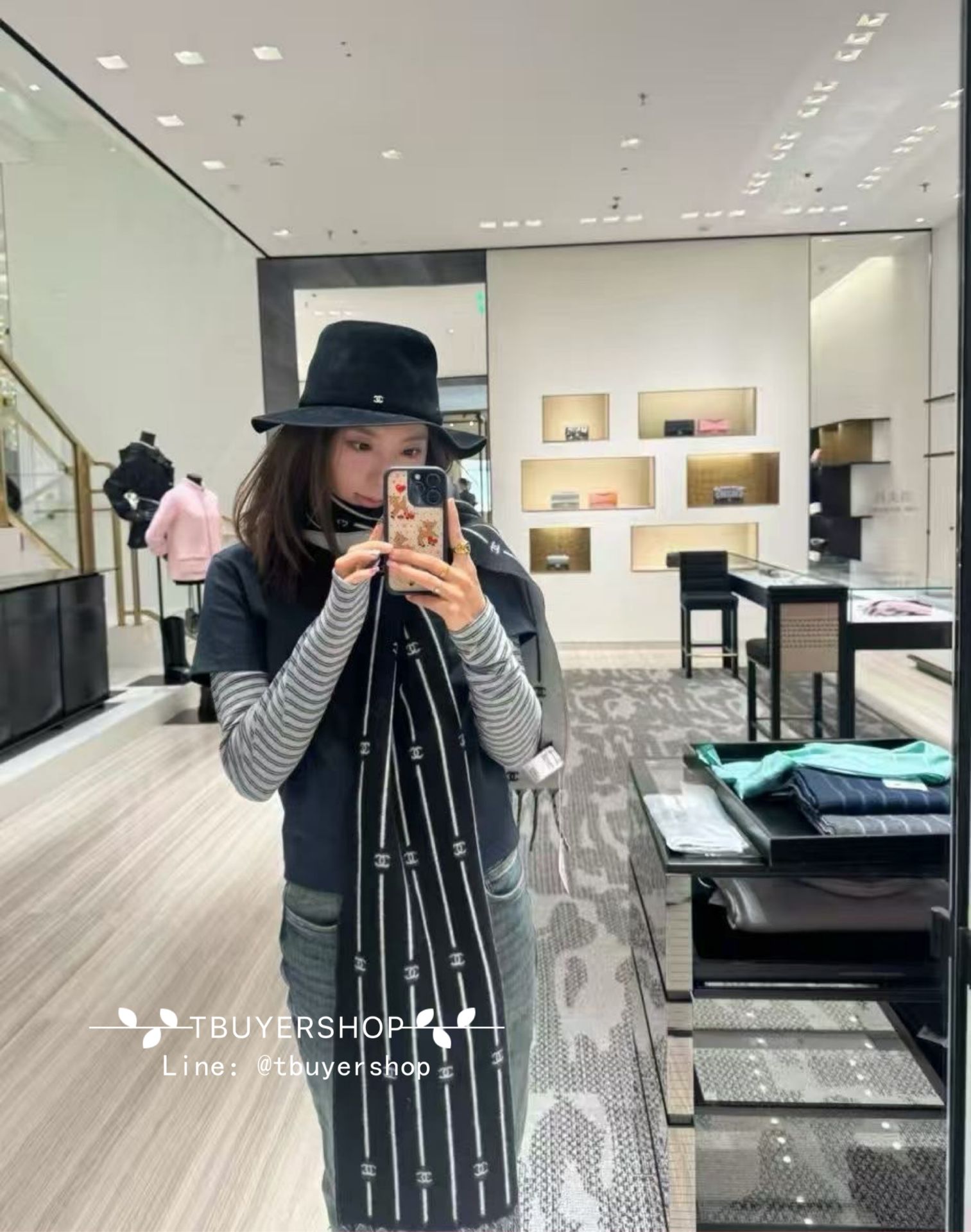 Chanel 25b 滿版logo 黑 雙面羊絨圍巾🧣