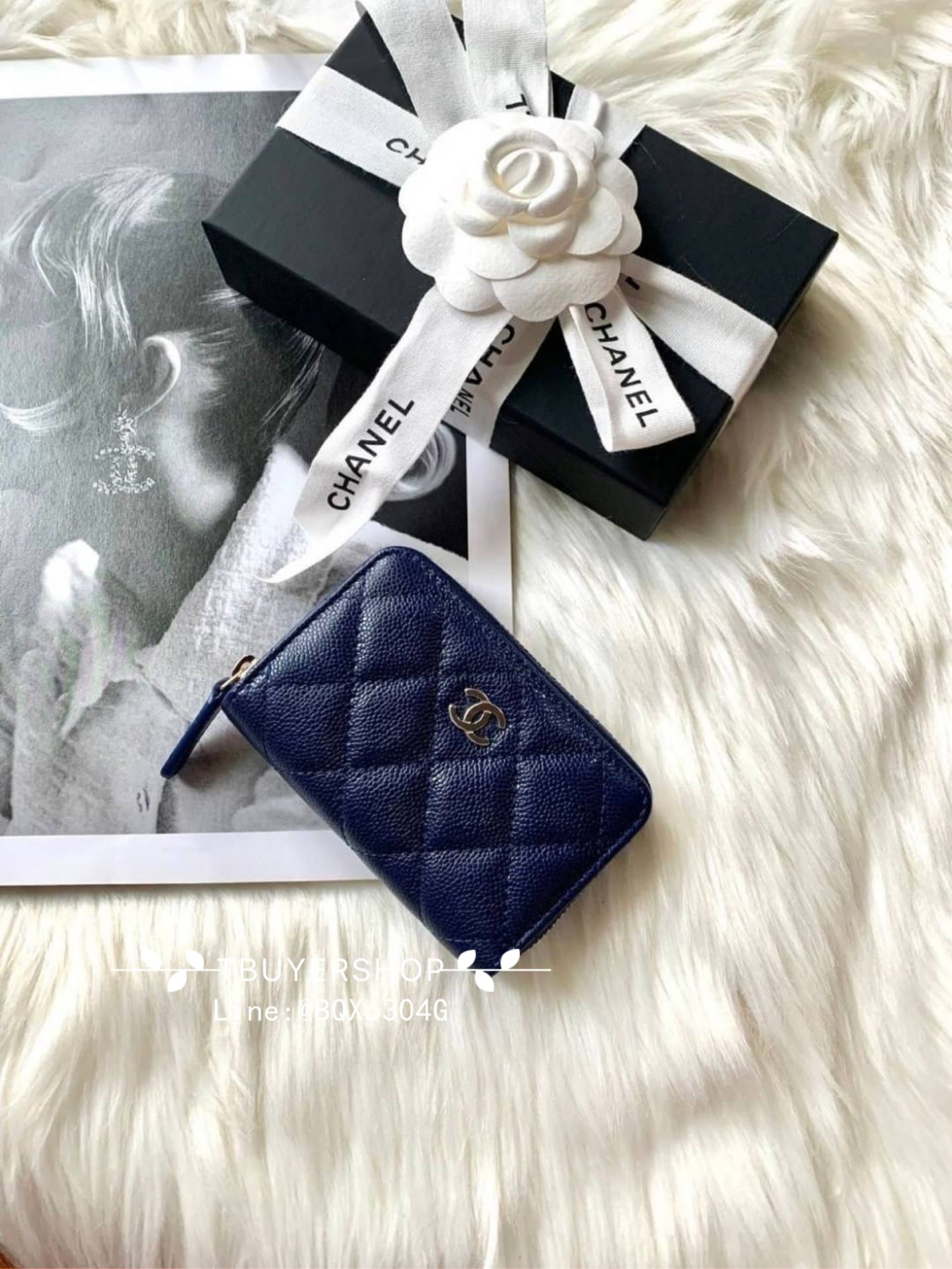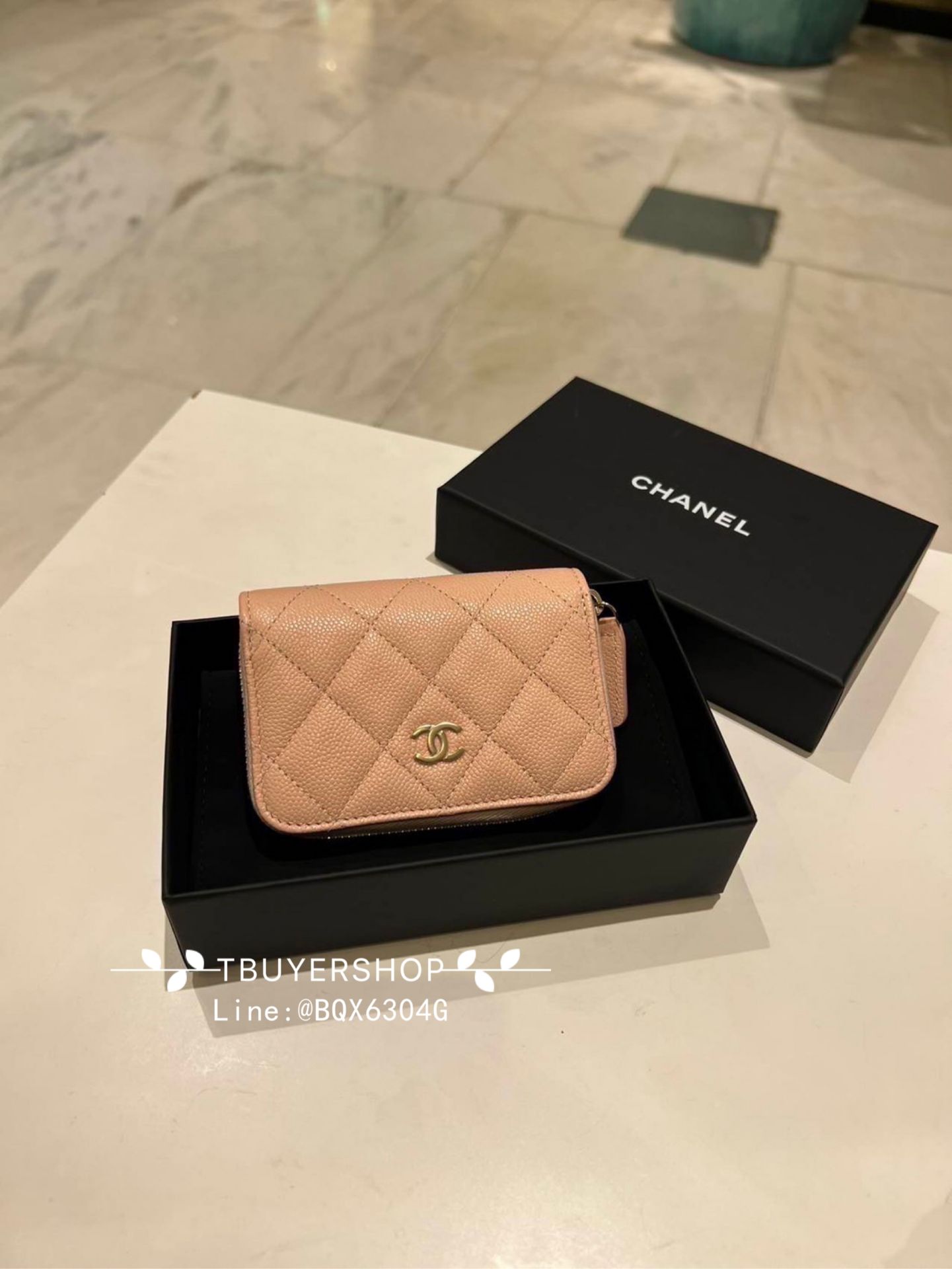 Chanel cf 深藍/裸粉色 金扣 荔枝皮 拉鍊錢包/卡包
