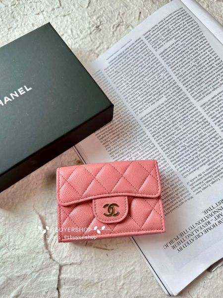 Chanel cf 珊瑚粉 金扣mini 三折短夾/錢包