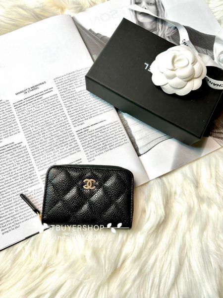 Chanel cf 黑金 荔枝皮 拉鍊卡包/錢包