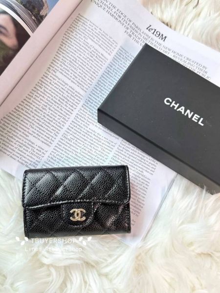 Chanel cf 黑金 荔枝皮 翻蓋單層卡包/錢包