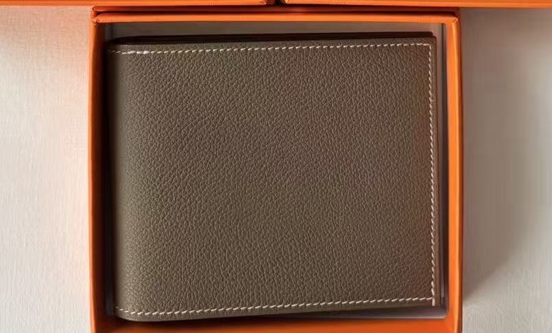 Hermes citizen twill絲巾 大象灰/棕 對折短夾 男士短夾