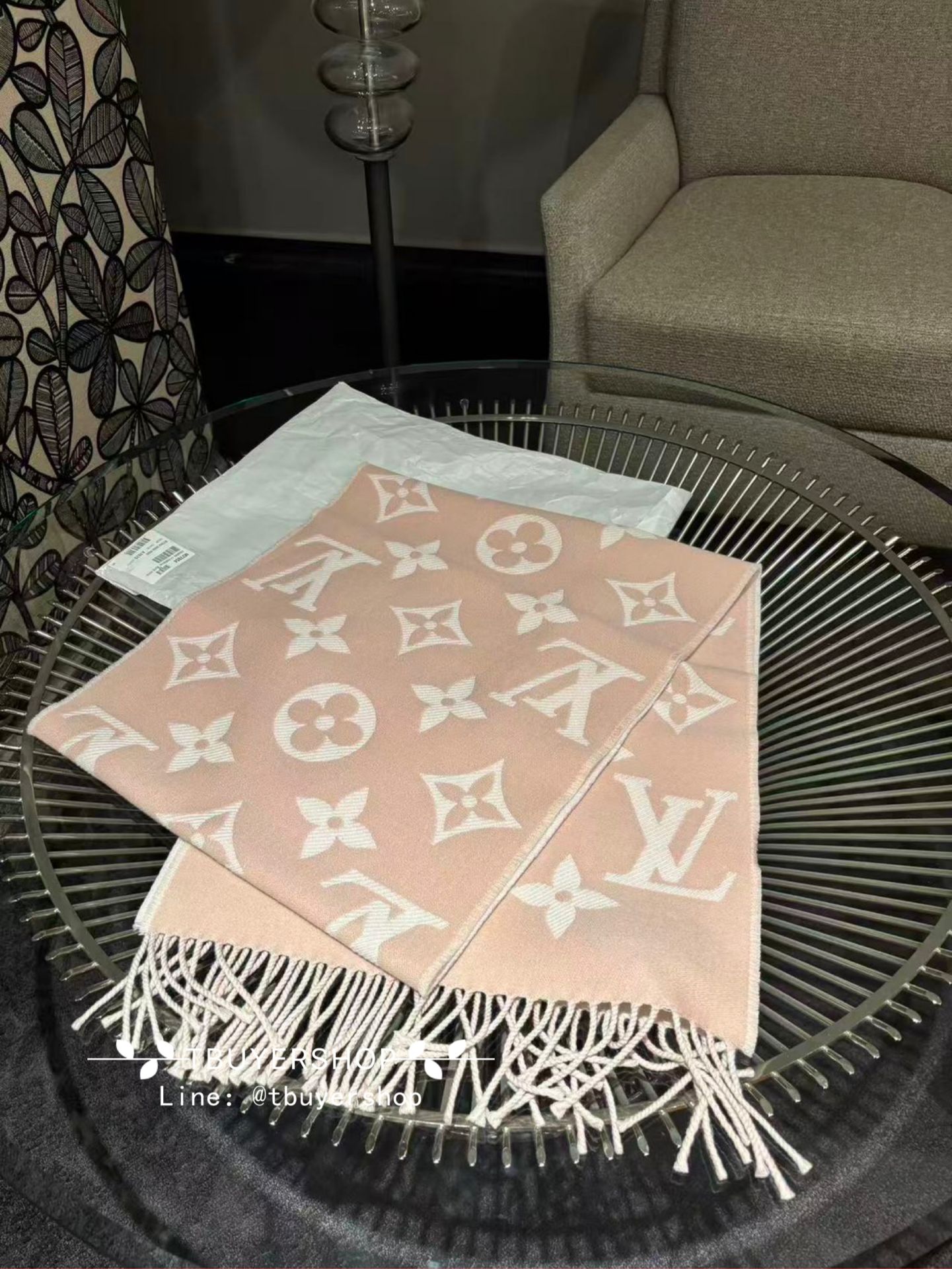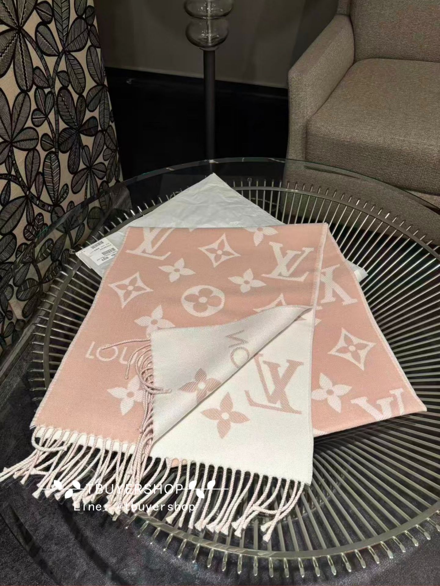 Lv Essential 粉 雙面老花圍巾 含盒子