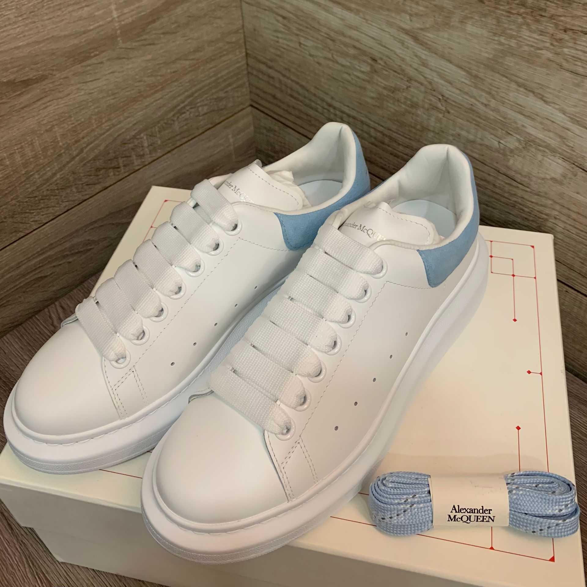 Alexander McQueen 繫帶圓頭運動鞋 麂皮水藍
