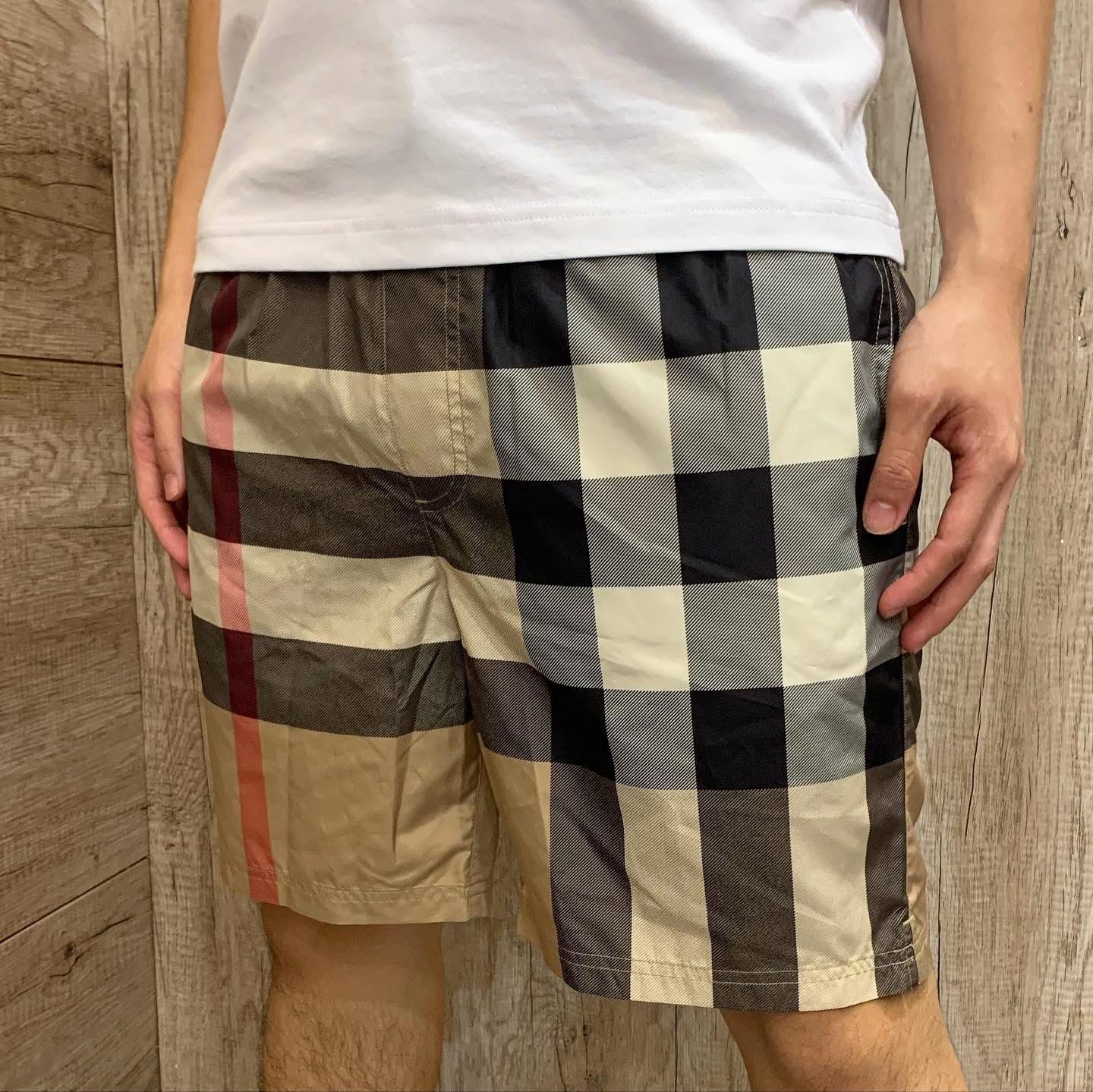 抽繩游泳褲,裝飾經典Burberry 格紋,呈現休閒版型。