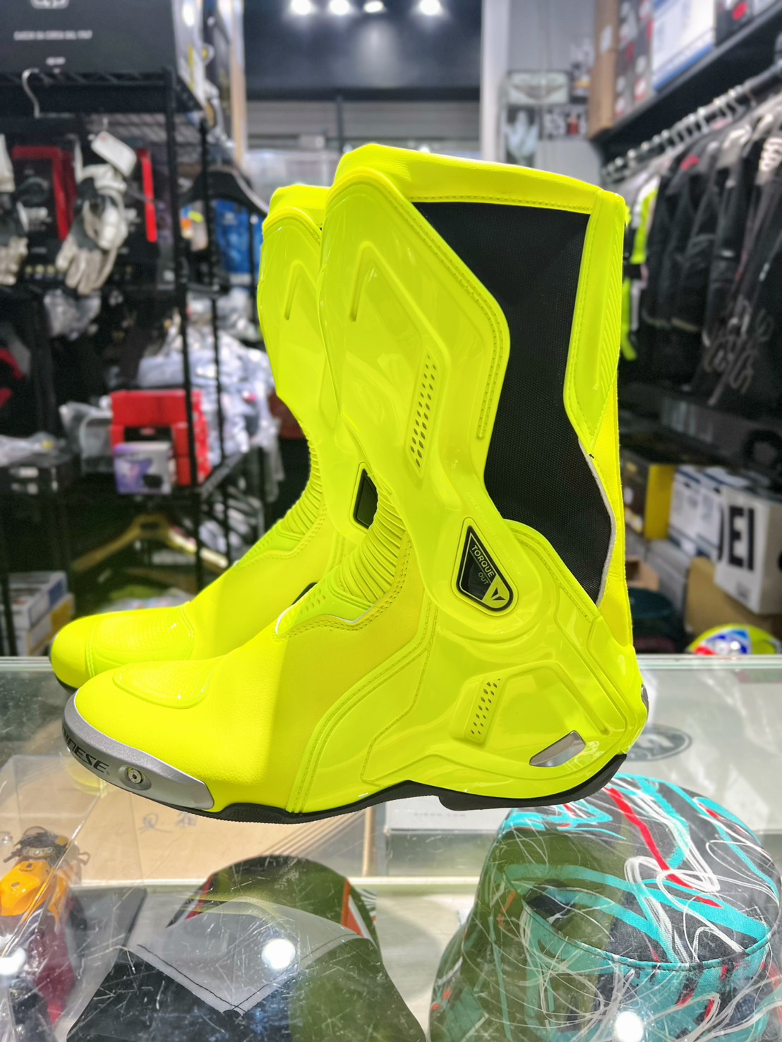 UPC騎士精品_台中店 【極品二手】DAINESE Torque 4 Out 銀光黃 頂級車靴 競技車靴 長筒車靴 鎂合金護具 賽道 尺寸:45