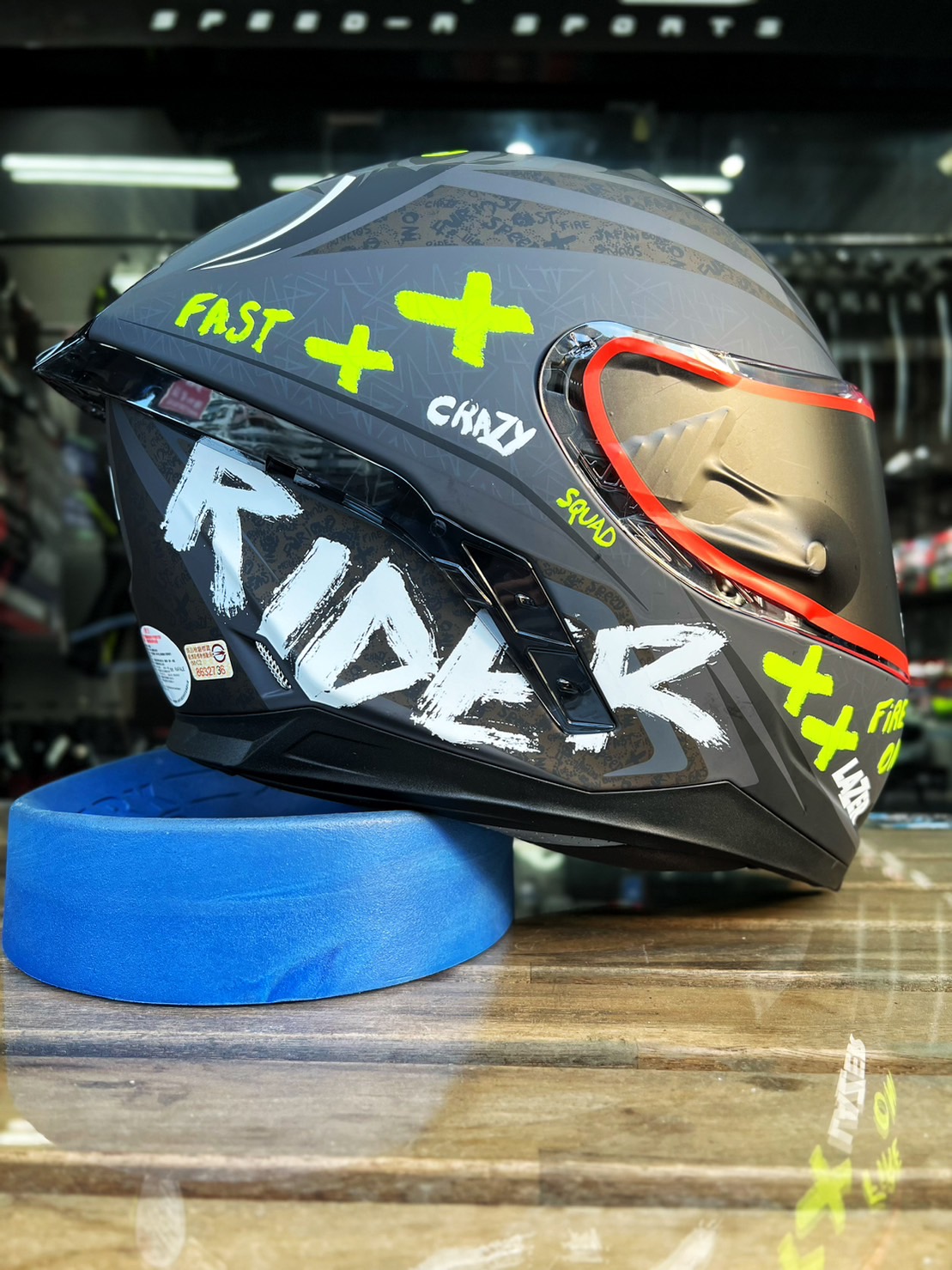 商品介紹: ■素材I.M.A.C - 耐衝擊複合合成材質 ■全新可調風門的競技款空力擾流板 ■通過ECE 22.05,內建墨片 ■鏡片快拆結構,為亞洲頭型單一帽殼 ■因應不同部位,EPS採用四種密度 ■方便開關的進氣結構 ■設計5個通風口,騎乘時更加舒適涼爽 ■3D內襯可調整眼鏡溝設計,三件可拆方便清洗 ■防止霧氣倒流的鼻罩及透氣下巴網 ■SOS+內襯緊急拆除系統 ■預留藍芽擴充空間,雙型雙內徑之雙D扣環 ■帽款 全罩式 (FULL FACE) ■重量 1550 ± 50g (未含鏡片) 注意事項 ■ 商品的狀況,多利用問與答請主動告知 商品型號 尺寸 顏色,我們將盡快回覆您 ■ 商品皆以訂單順序分配出貨,收到訂單後3個工作天內出貨•正常沒有缺貨情況•不含週日 ■ 缺貨商品需等候廠商另行通知,無法接受者切勿下標 ■ 我們統一由系統寄發得標信,不再另行寄送得標信