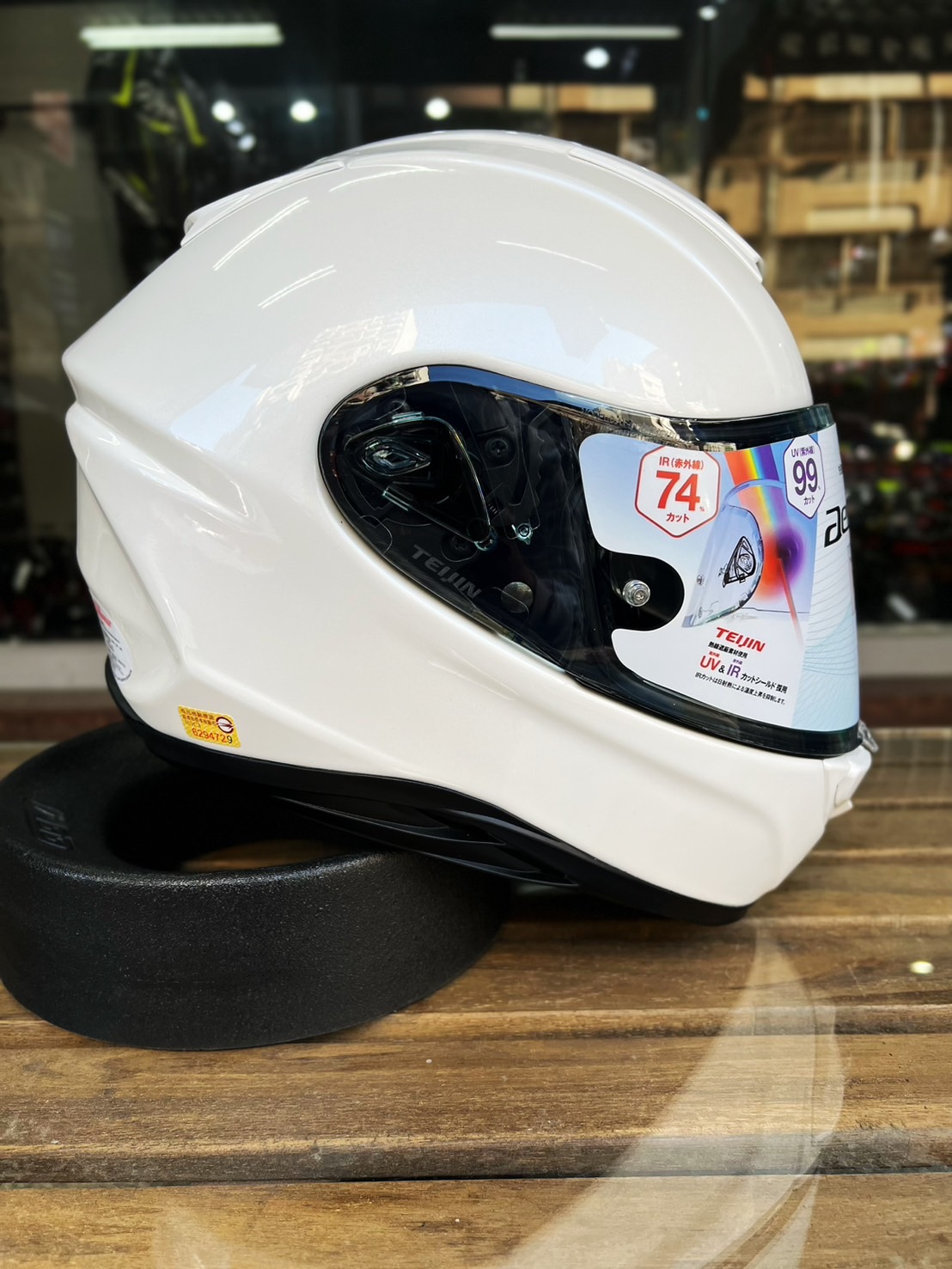 商品說明: ■鏡片使用熱射線隔熱「UV & IR cut shield」材料科技。 ■輕盈細膩分類的四帽體設計。 ■提高操作性的鏡片鎖。 ■結合先進的空氣動力設計。 ■高強度複合材質技術與安全設計。 ■尾流穩定設計、前方開口進氣控制。 ■新型雙軸鏡片浮動設計系統。 ■設計附有眼鏡溝槽的臉頰墊、雙D型扣環設計。 ■可安裝寬型100% MAX VISION Pinlock防霧片。 ■通過日本JIS認證。