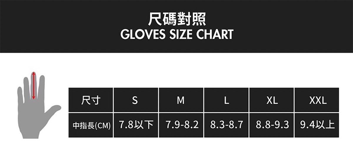商品說明: ■使用牛皮、透氣布。 ■採用SSFT設計,貼合亞洲人手型,舒適性極佳。 ■CARBON碳纖維護具,高強度、高硬度、耐熱性高。 ■手指硬式關節防護。 ■虎口耐磨布料補強。 ■手掌防護軟墊。 ■可觸控螢幕。