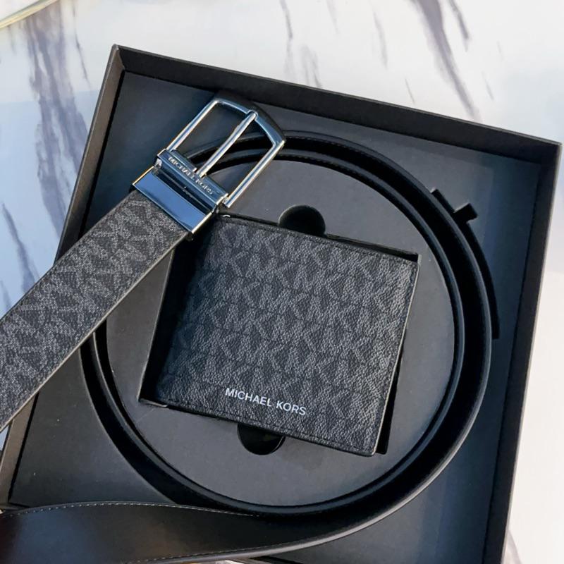 Mk男士短夾+皮帶禮盒組