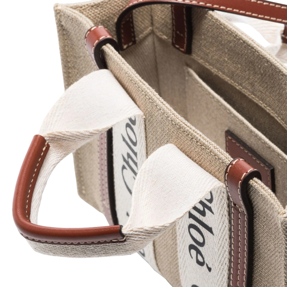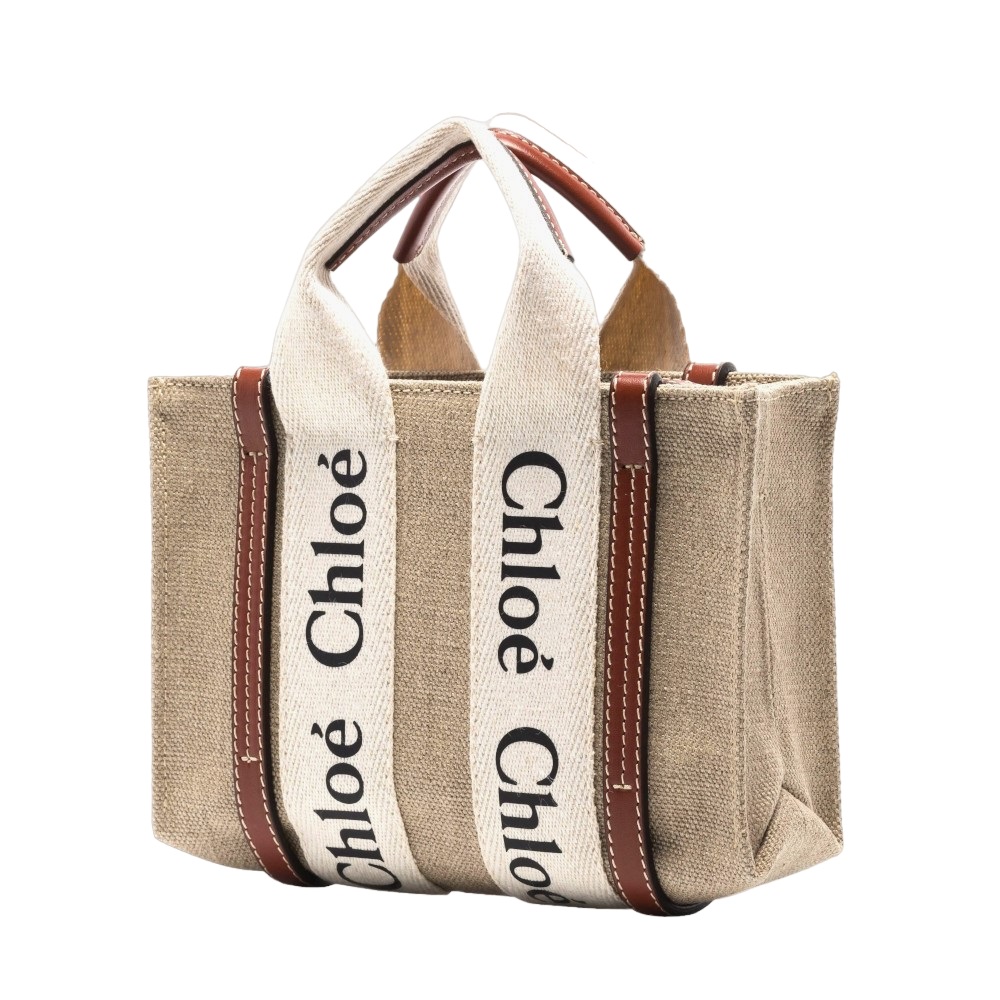 CHLOE 蔻依 Woody Mini 迷你 帆布 手提斜背包 托特包 兩用包 燕麥色 棕色
