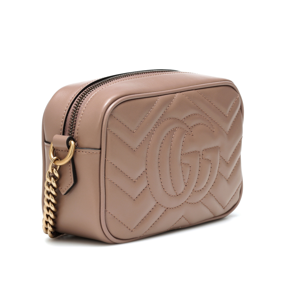 GUCCI 古馳 GG Marmont Mini 迷你 皮革 山形紋 肩背包 斜背包 相機包 裸粉色 裸色 18公分 448065