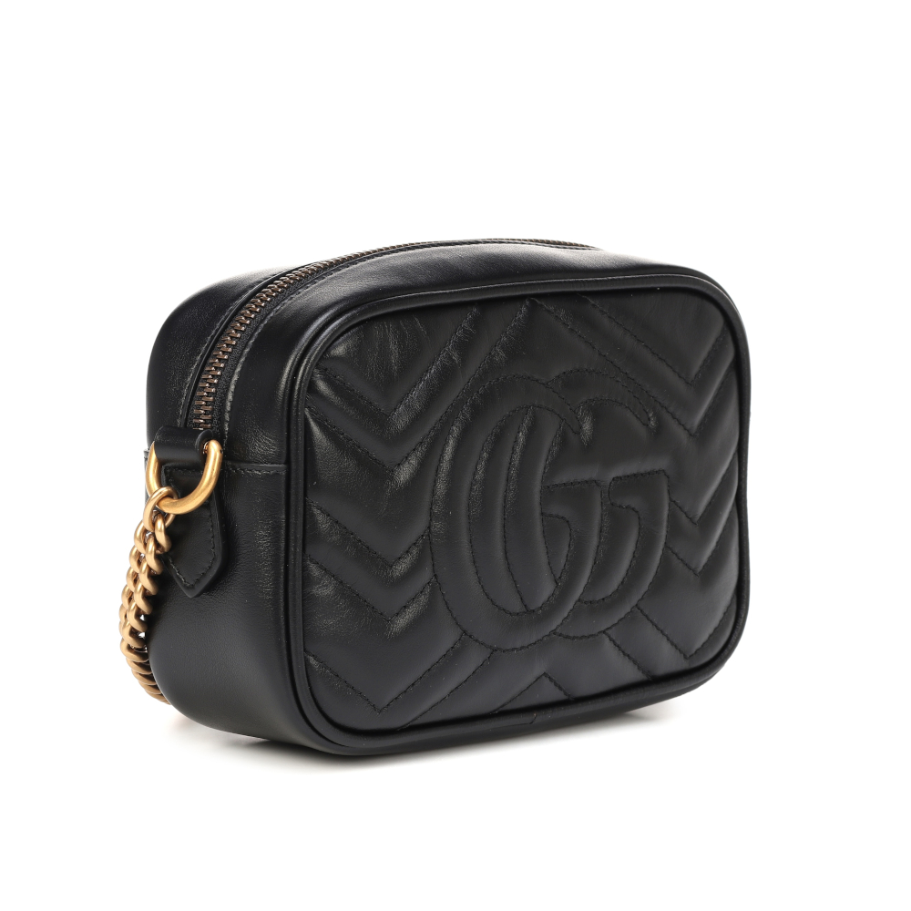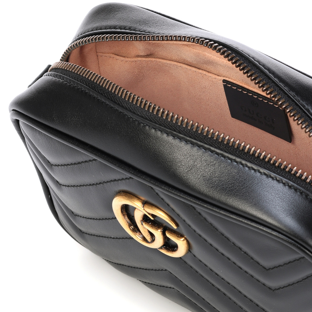 GUCCI 古馳 GG Marmont Mini 迷你 皮革 山形紋 肩背包 斜背包 相機包 黑色 18公分 448065