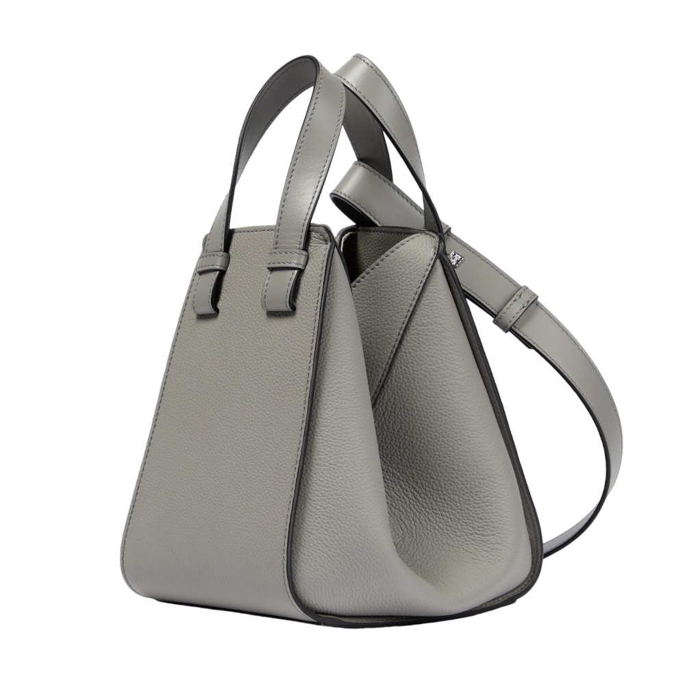 LOEWE 羅威 Compact Hammock 小型 柔軟粒面小牛皮 吊床包 肩背包 手提包 珍珠灰