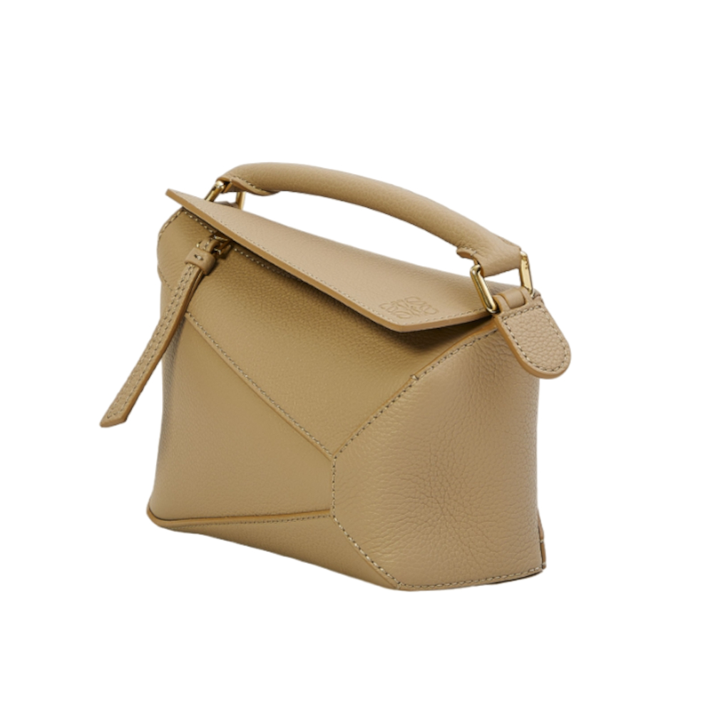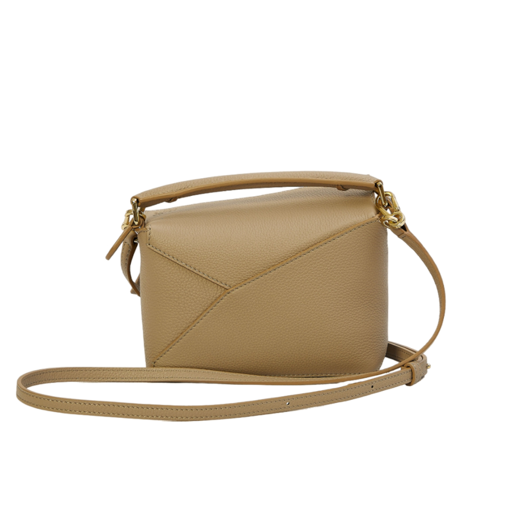 LOEWE 羅威 Mini Puzzle 迷你 柔軟粒面小牛皮 拼圖包 幾何 拼接包 肩背包 沙色