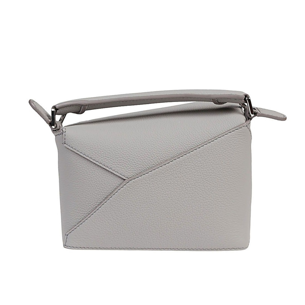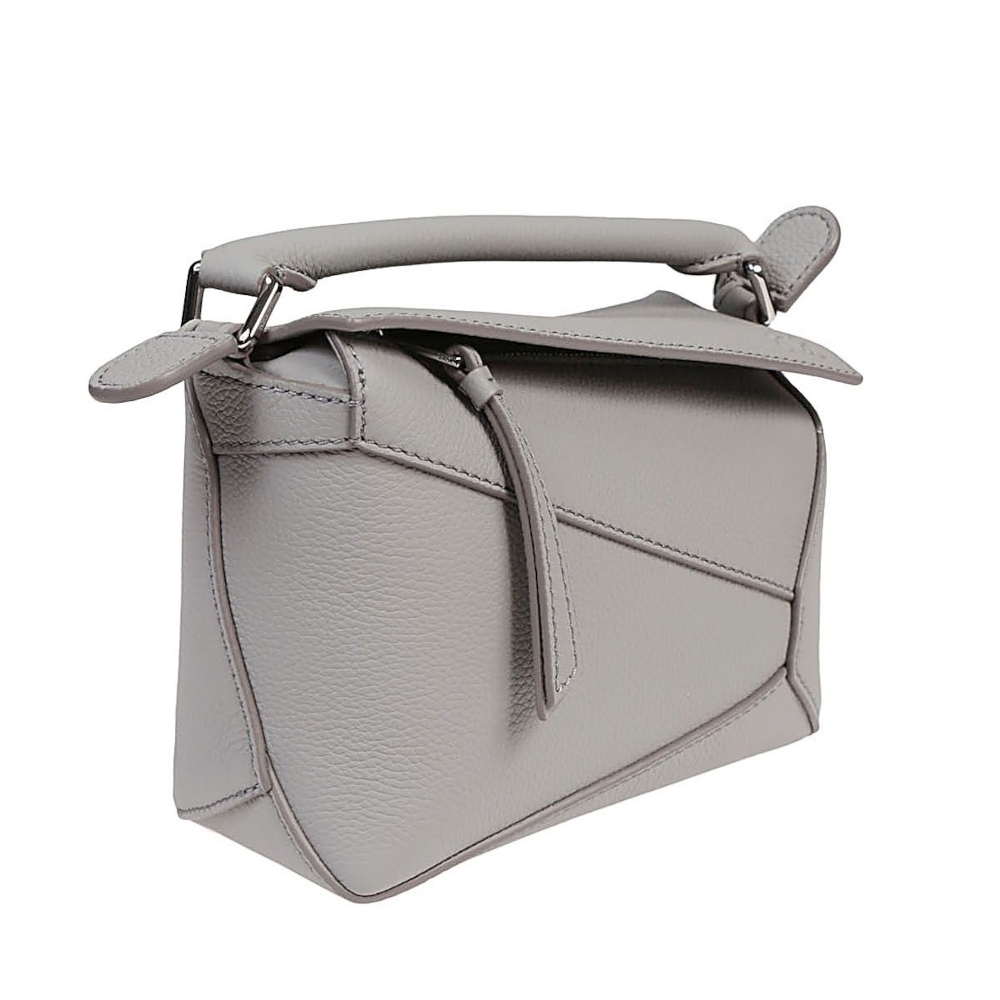 LOEWE 羅威 Mini Puzzle 迷你 柔軟粒面小牛皮 拼圖包 幾何 拼接包 肩背包 珍珠灰色