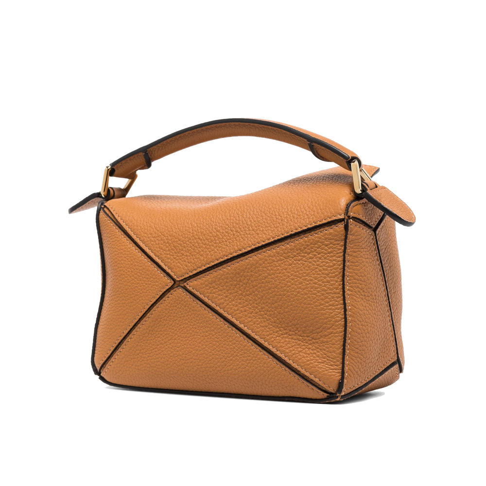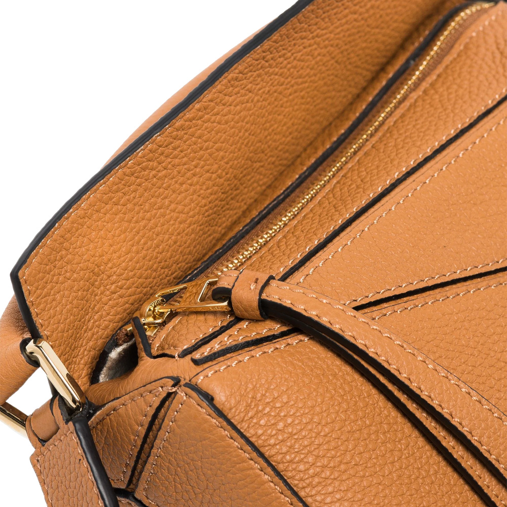 LOEWE 羅威 Mini Puzzle 迷你 柔軟粒面小牛皮 拼圖包 幾何 拼接 肩背包 淺焦糖色