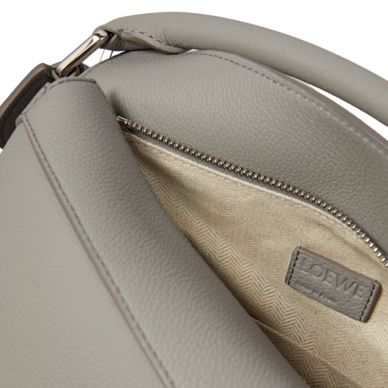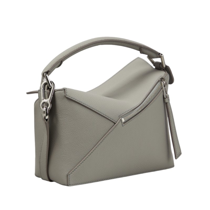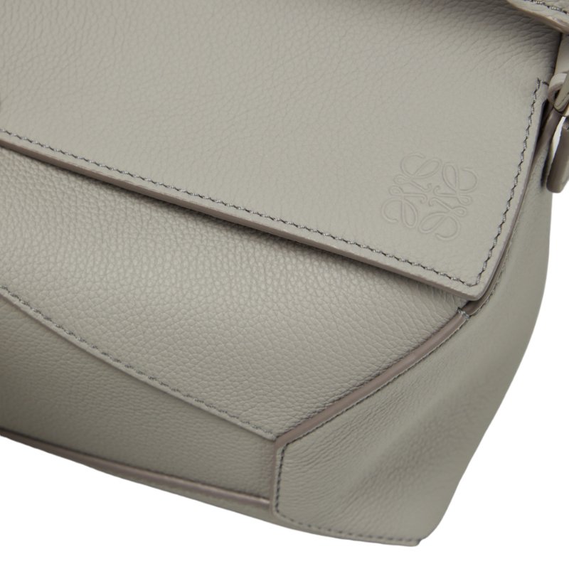 LOEWE 羅威 Small Puzzle 小款 柔軟粒面小牛皮 拼圖包 幾何 拼接包 肩背包 珍珠灰色