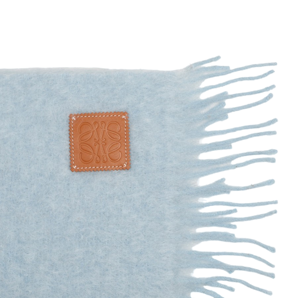 LOEWE 羅威 Wool Mohair 羊毛與馬海毛混紡 圍巾 淺藍色