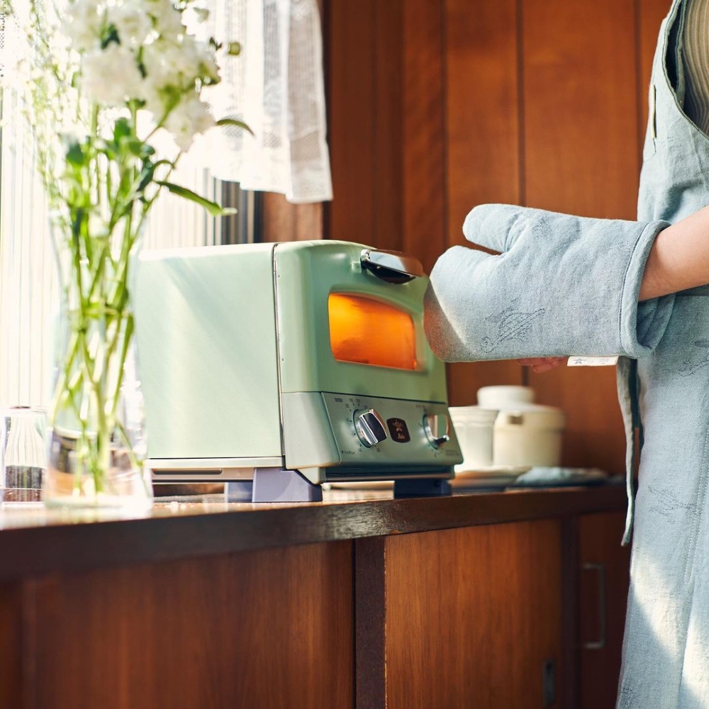 2025年最新特仕版・附多功能迷你烤盤|日本千石阿拉丁 4枚燒復古多用途烤箱-綠色 AET-G13T《WUZ屋子》 Z-117-AET-G13T-G-2025