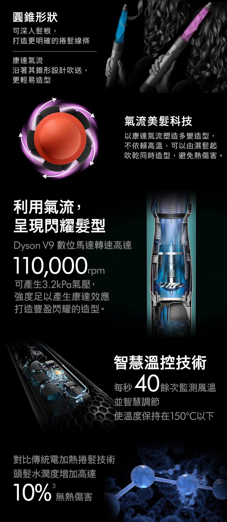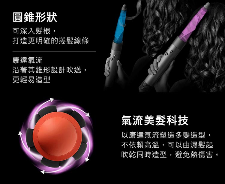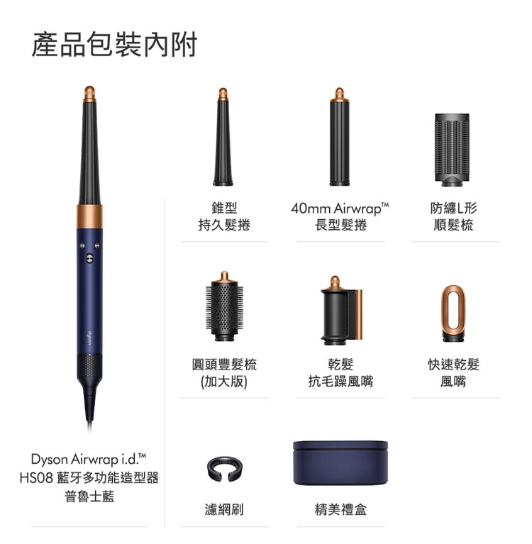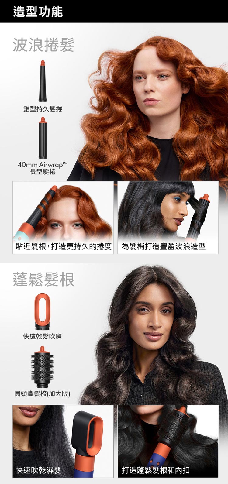 快速乾髮吹嘴、圓頭豐髮梳(加大版)、乾髮抗毛躁風嘴、軟質順髮梳、錐形持久髮捲、40mm AirwrapTM 長型髮捲、禮盒