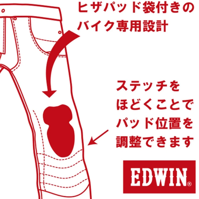 EDWIN 獨家開發的超彈力丹寧布料,提供極高的靈活性,減少跨坐時的不適感