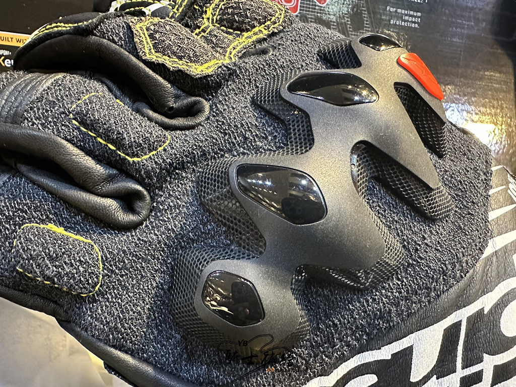 •手腕大面積防護及指關節採用高強度 KEVLAR 材質(防彈衣材質,功夫龍)