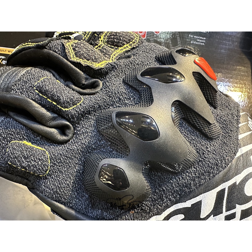 •手腕大面積防護及指關節採用高強度 KEVLAR 材質(防彈衣材質,功夫龍)