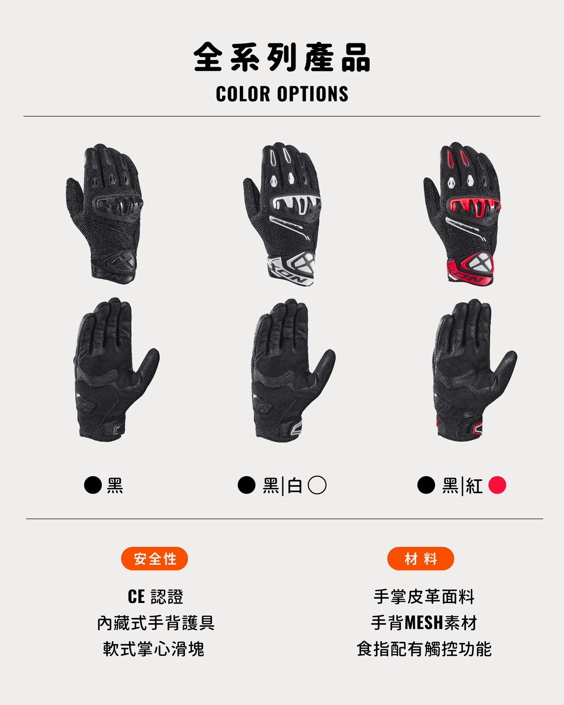 IXON MIRAGE AIRFLOW 黑白 短手套 打孔 運動款 防摔 透氣 觸控 代理公司貨 法國