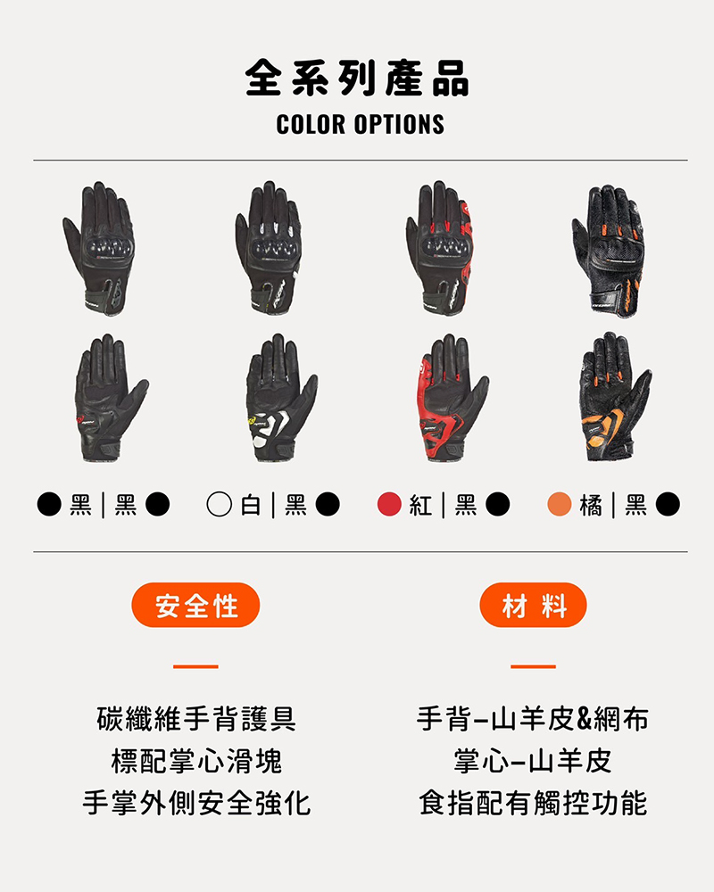 IXON RS RISE AIR 橘黑 短手套 防摔 透氣 觸控 四色 代理公司貨 法國