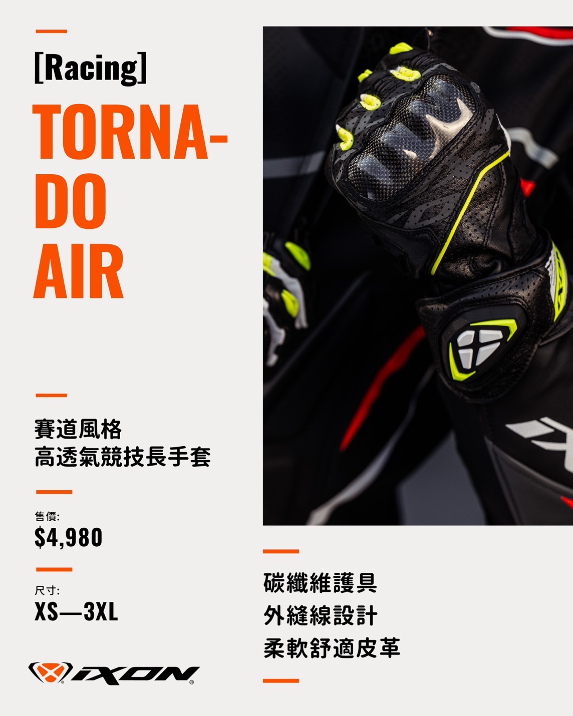 IXON TORNADO AIR 競技 長手套 黑黃 防摔 夏季 透氣 代理公司貨 法國