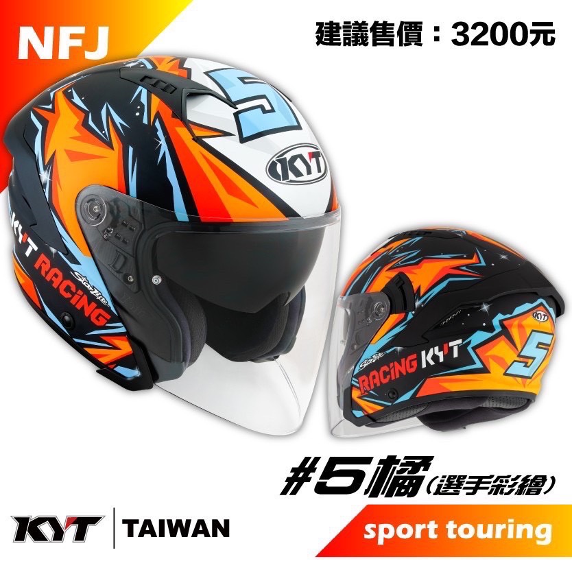 ⚠YB騎士補給⚠ KYT NFJ #5 橘 選手彩繪 3/4 半罩 安全帽 內墨片 排扣 彩繪 ※注意※ 請先詢問您要尺寸與顏色是否有現貨再下標唷!! 有任何疑問歡迎使用【問與答】或參考【關於我】相關資訊與我聯繫