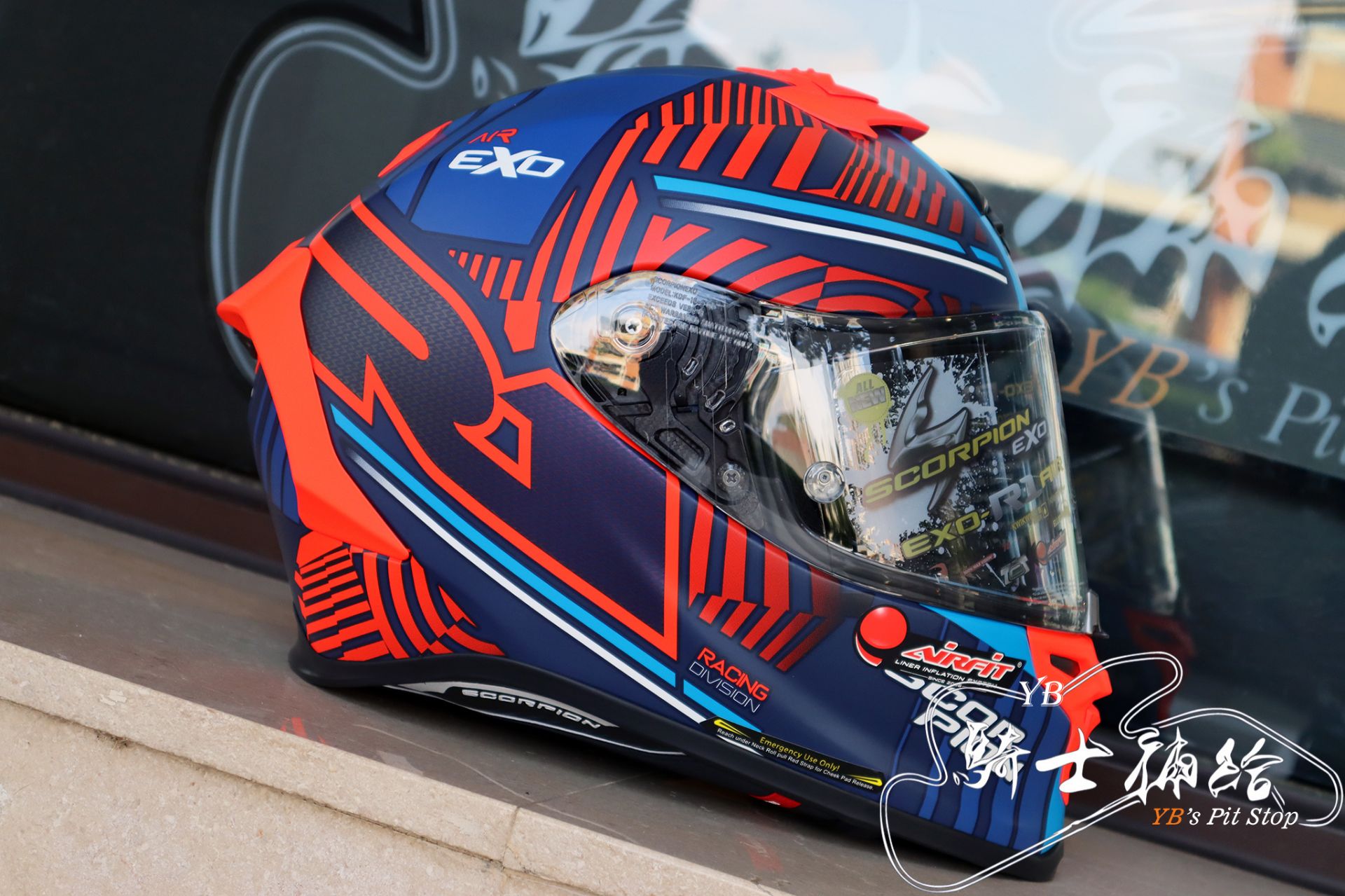 ⚠YB騎士補給⚠ Scorpion EXO R1 Air Victory 消光 藍紅 全罩 蠍子 贈墨片 輕量化 ※注意※ 請先詢問您要尺寸與顏色是否有現貨再下標唷!! 有任何疑問歡迎使用【問與答】或參考【關於我】相關資訊與我聯繫
