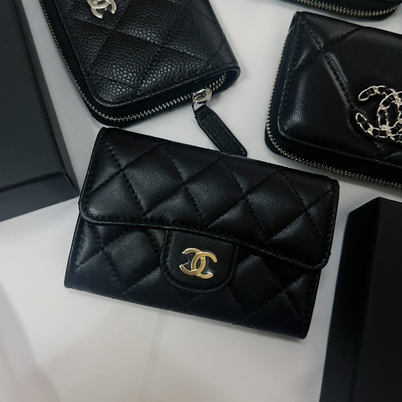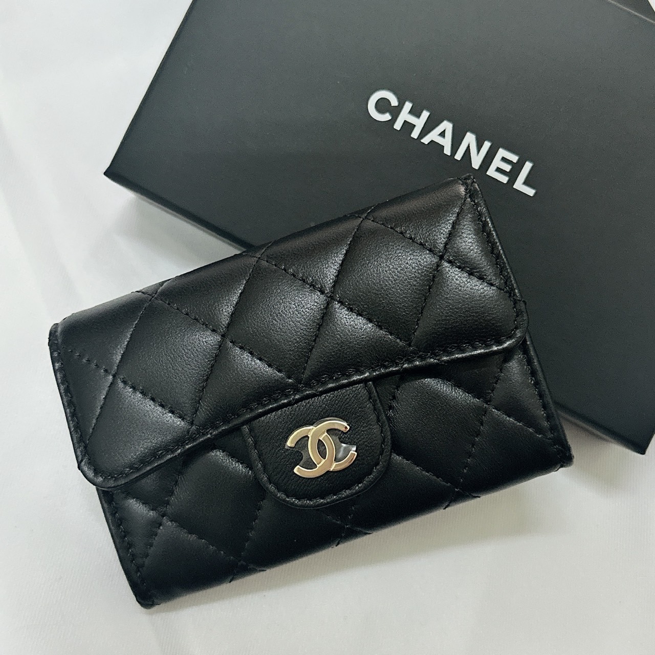 【Luxury】現貨 CHANEL 香奈兒 精品代購 經典口蓋零錢包 卡包 短夾 小羊皮 金扣 全新全配