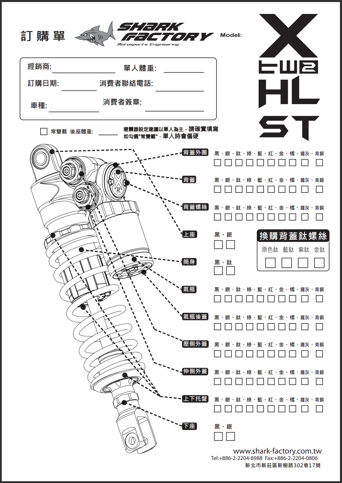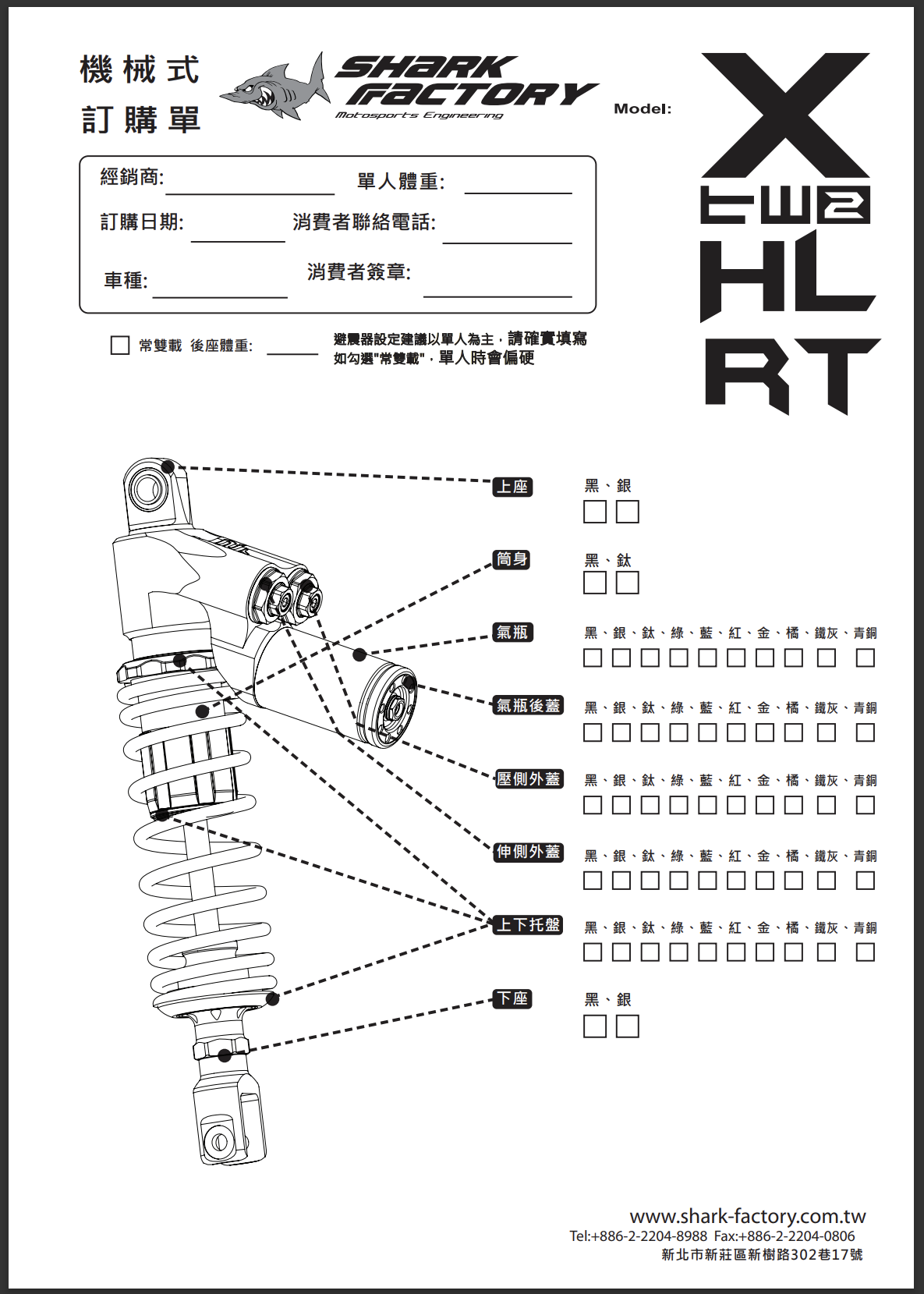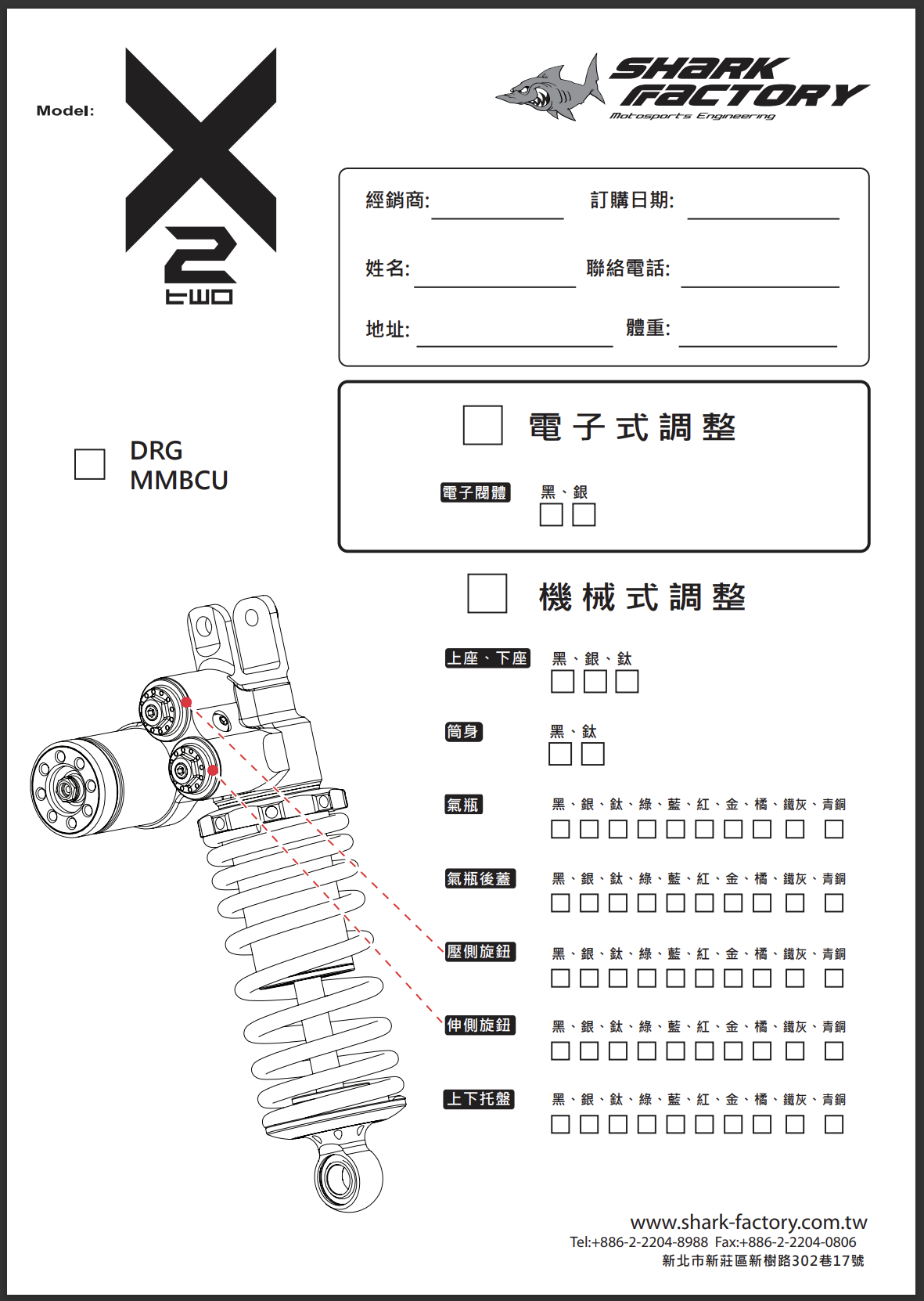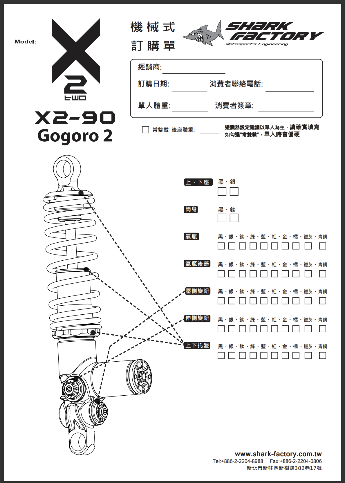 Shark Factory 鯊魚工廠 X2 X2-HL 系列  避震器具備複桶式結構