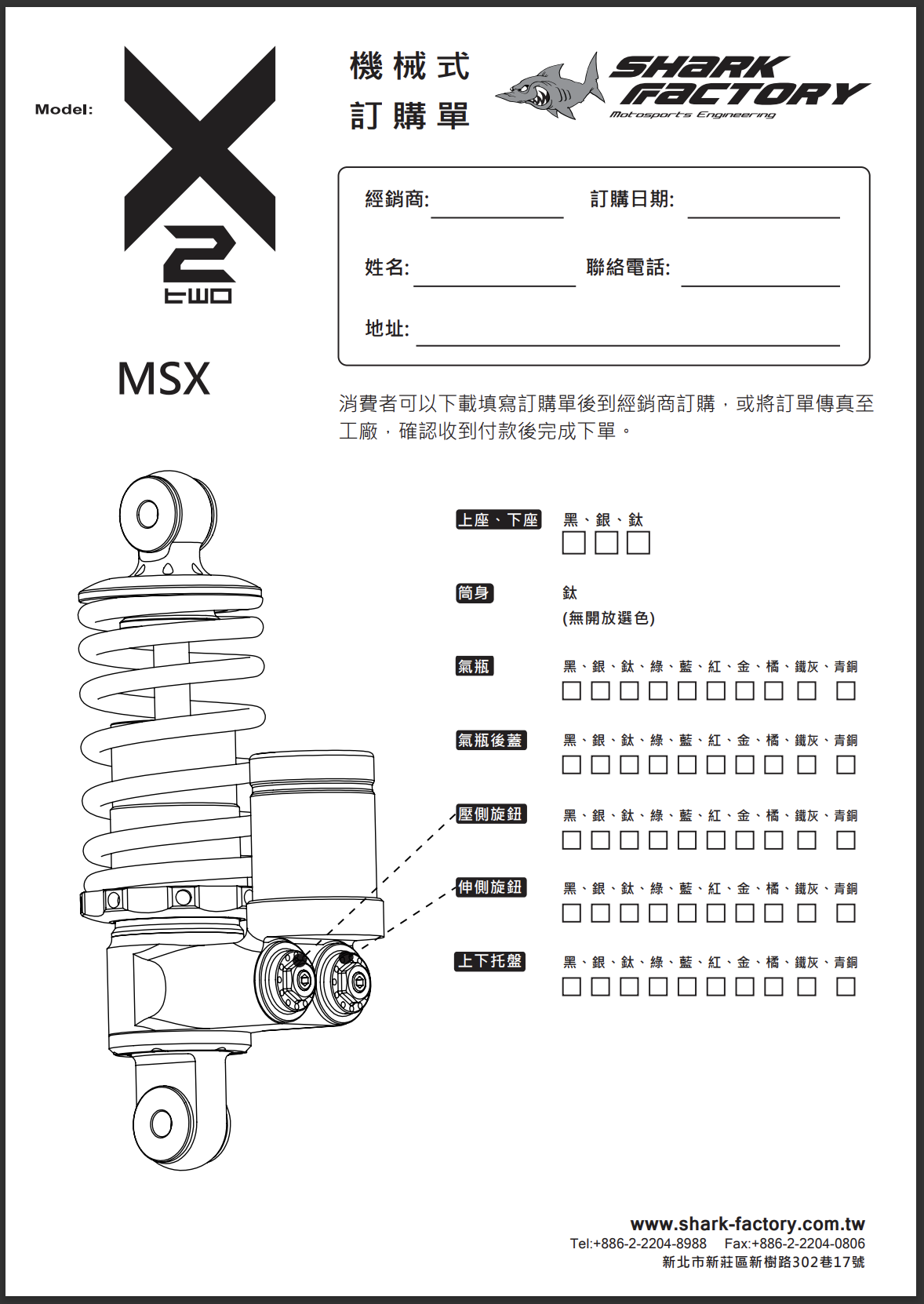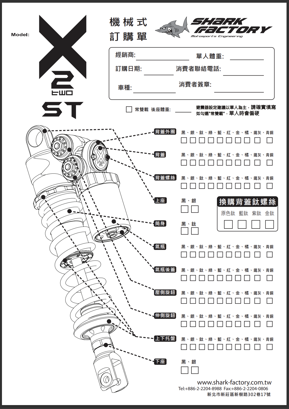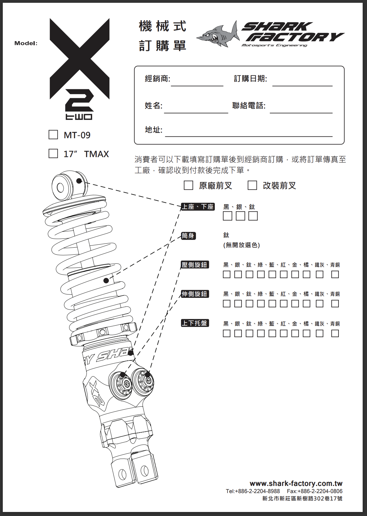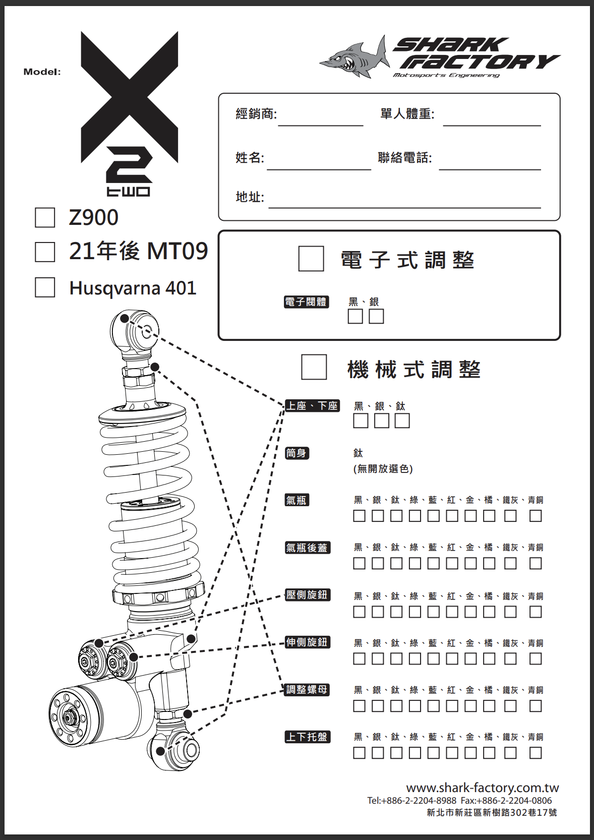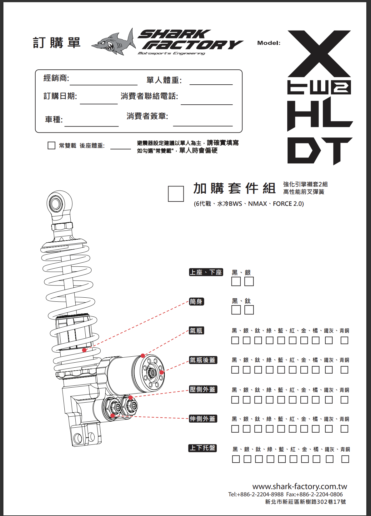 Shark Factory 鯊魚工廠 X2 X2-HL 系列  避震器具備複桶式結構