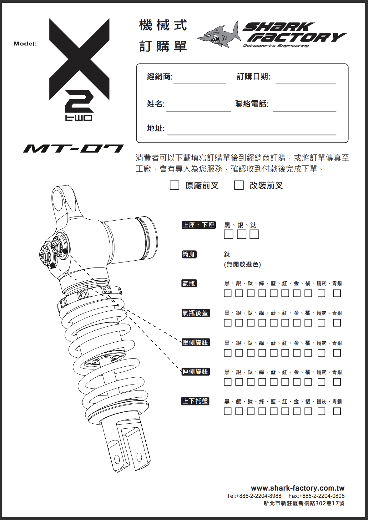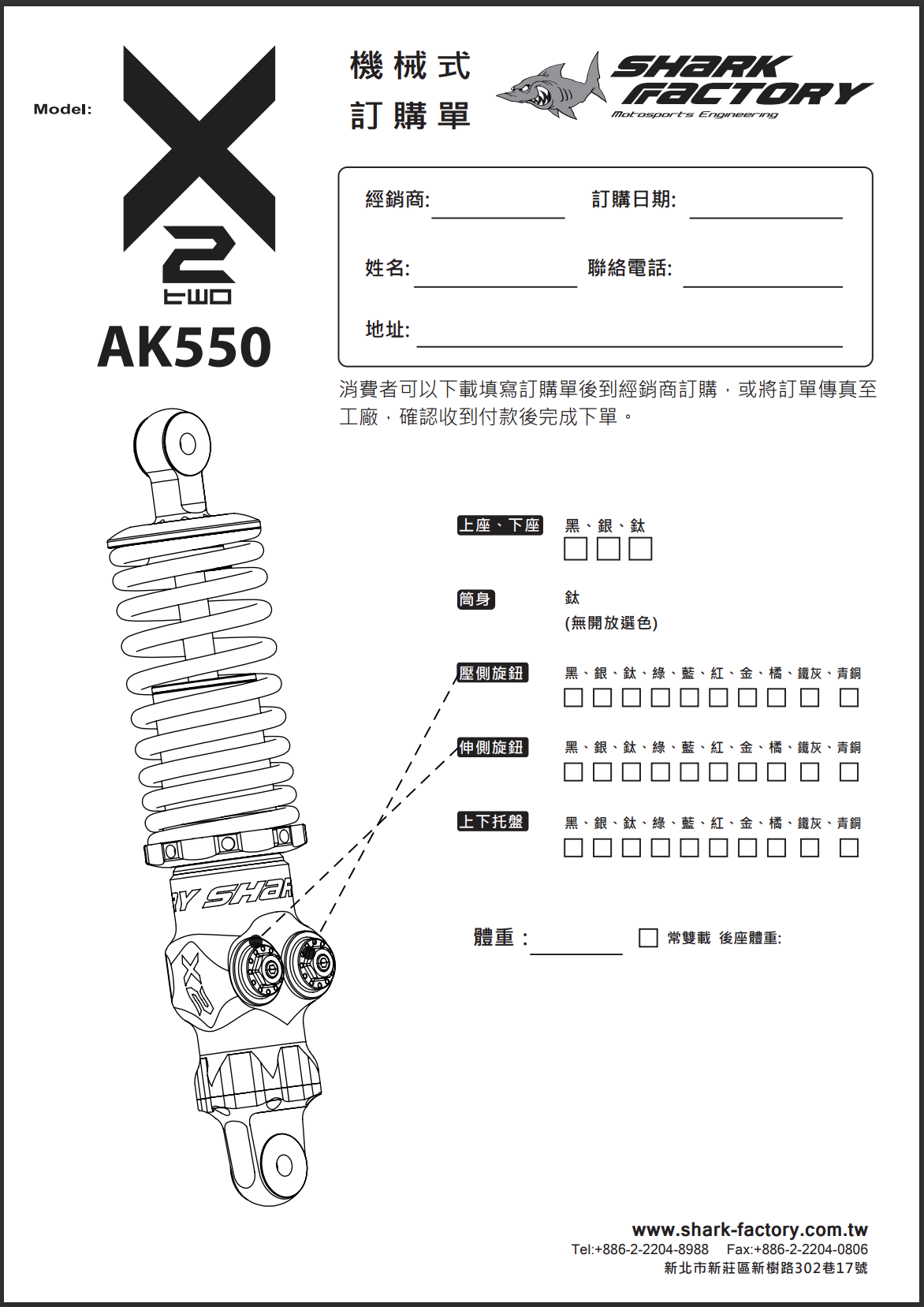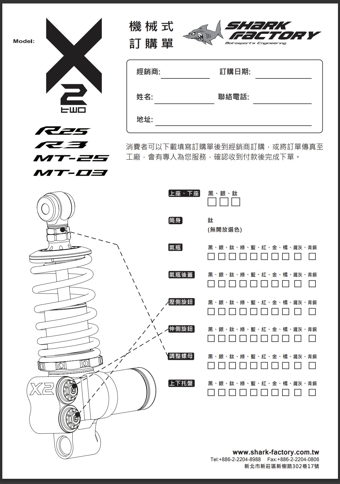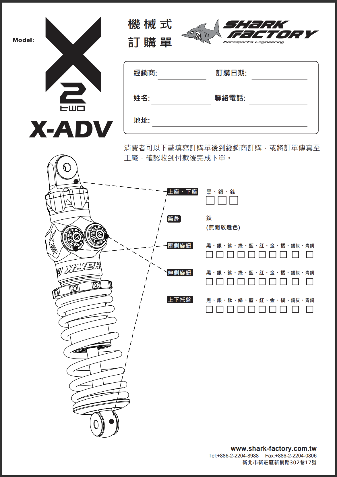Shark Factory 鯊魚工廠 X2 X2-HL 系列  避震器具備複桶式結構